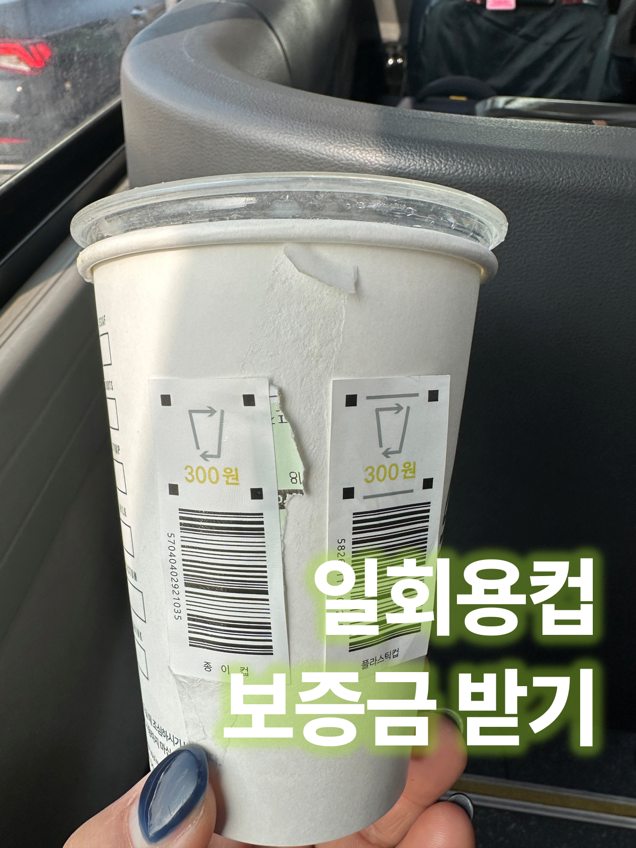 일회용컵에 300원 보증금이 붙어 있더라고요.