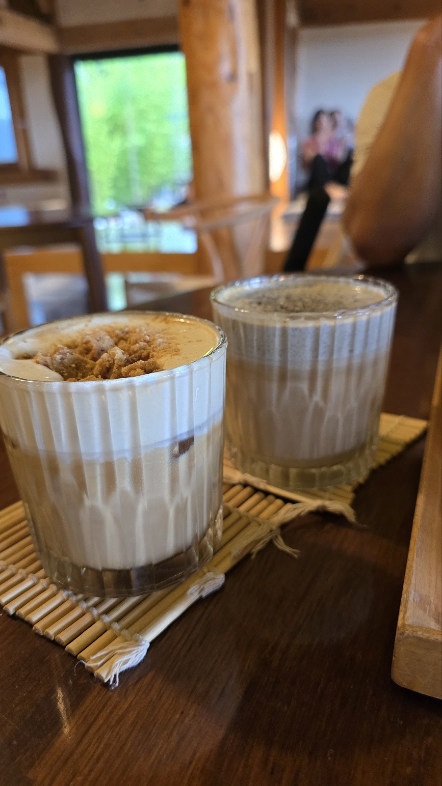 이날 우리는 다양한 라떼류와 디저트를 주문했어요. 그 중에서도 특히 인상 깊었던 건 진한 풍미의 흑임자라떼였습니다.