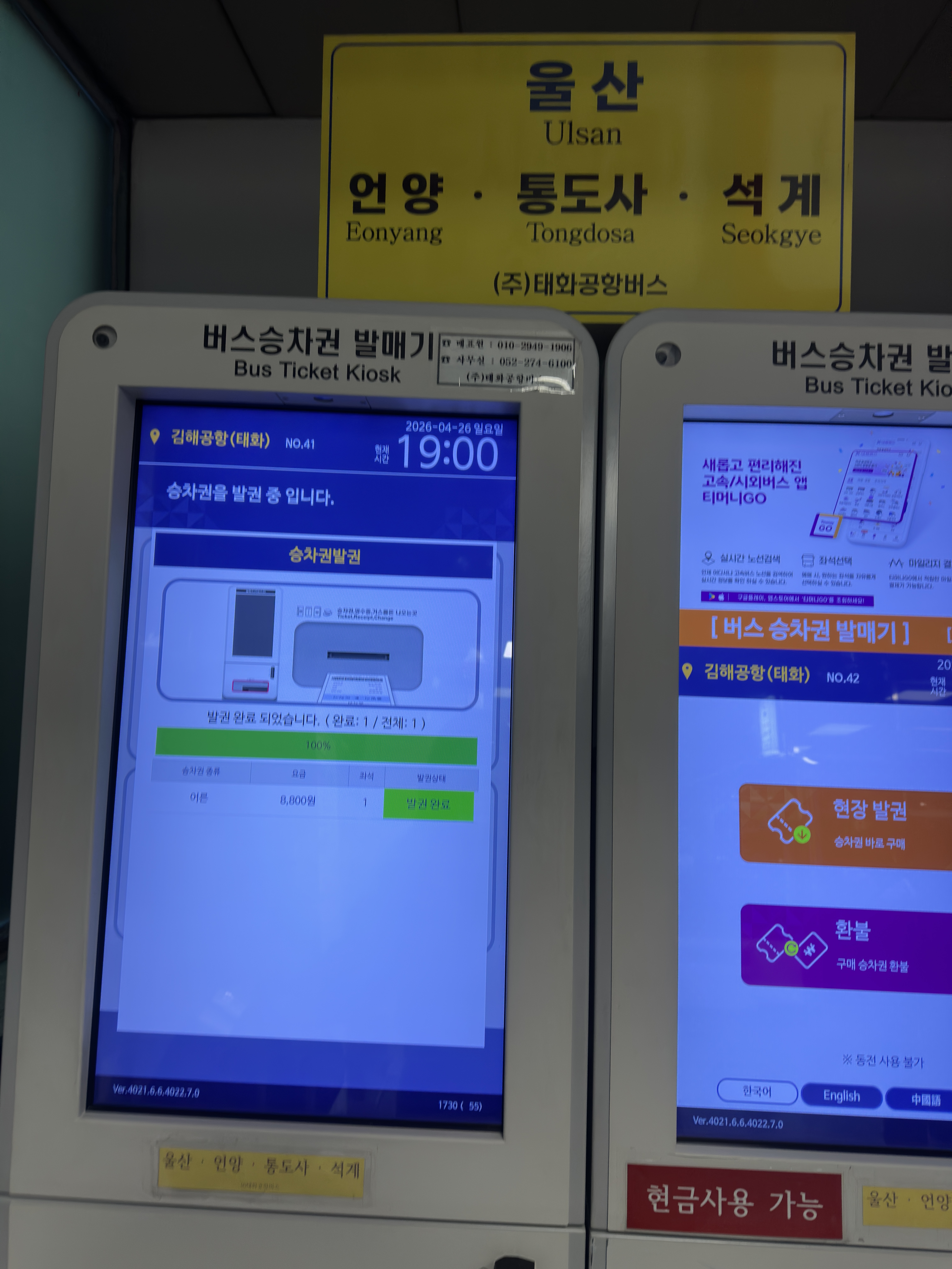 울산행은 현장 발권만 가능해요.