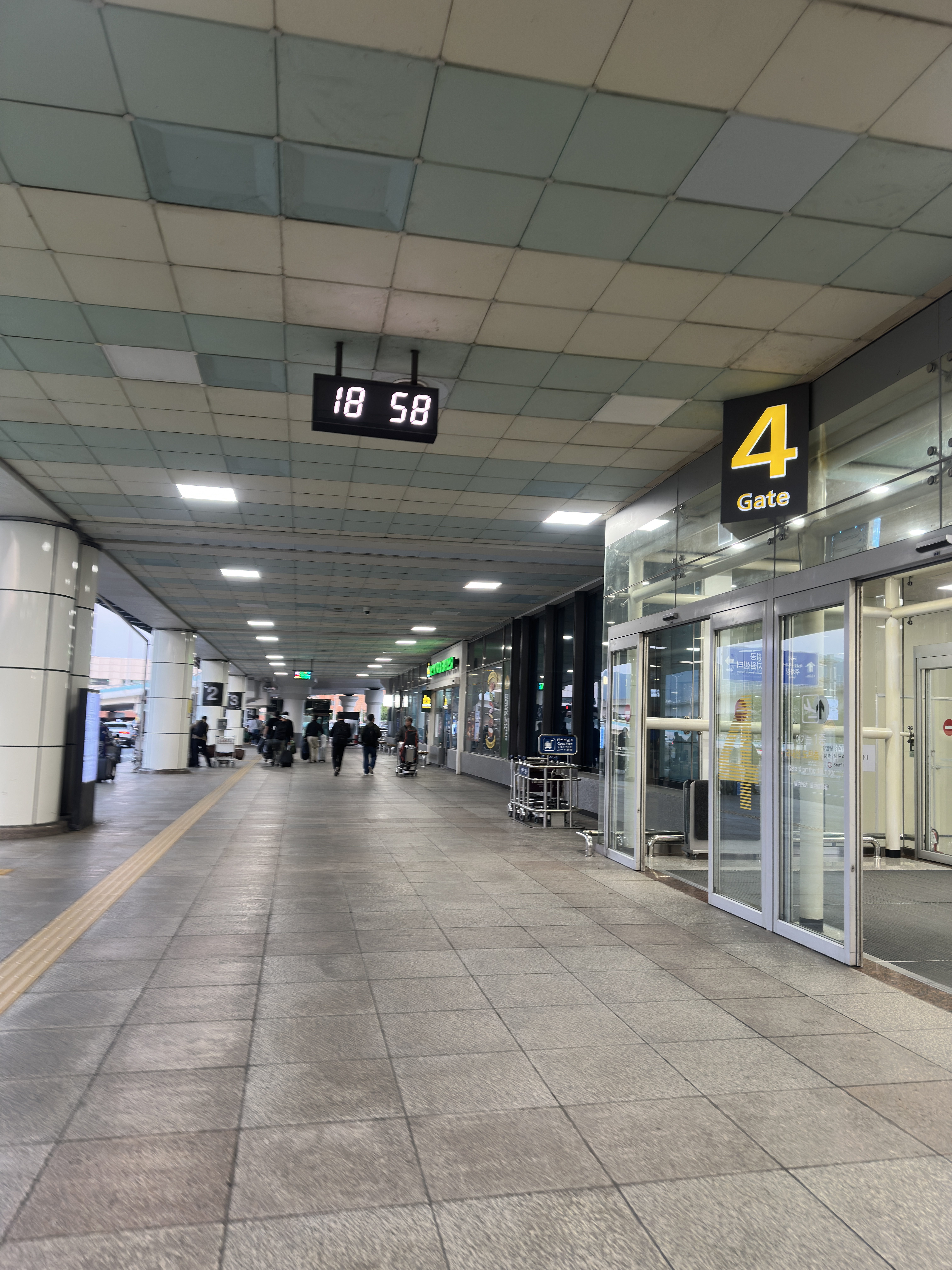 비행기에서 내려 도착층으로 나온 뒤, 밖으로 나가 4번 게이트 방향으로 이동하시면 돼요.