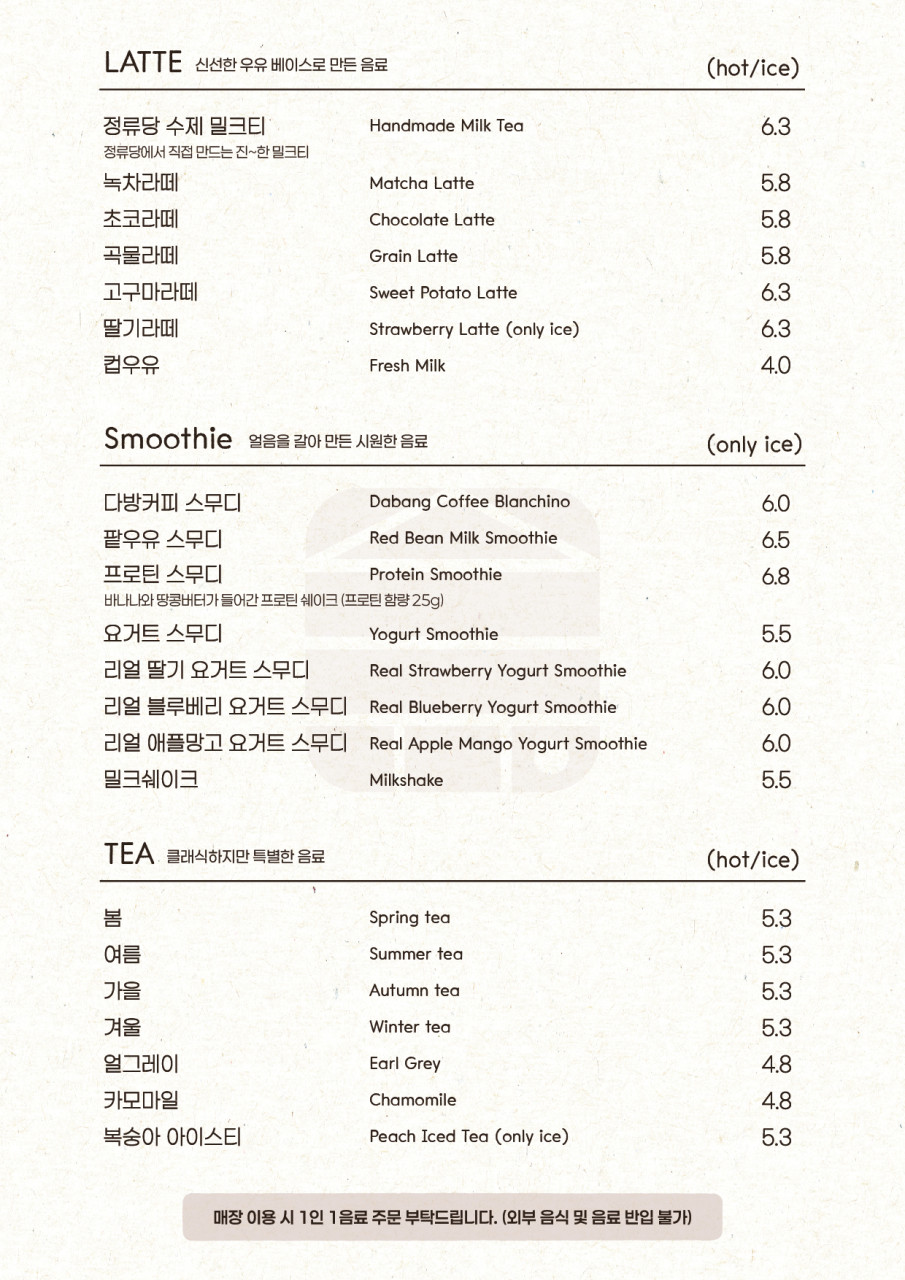 🥤 정류당 메뉴 후기