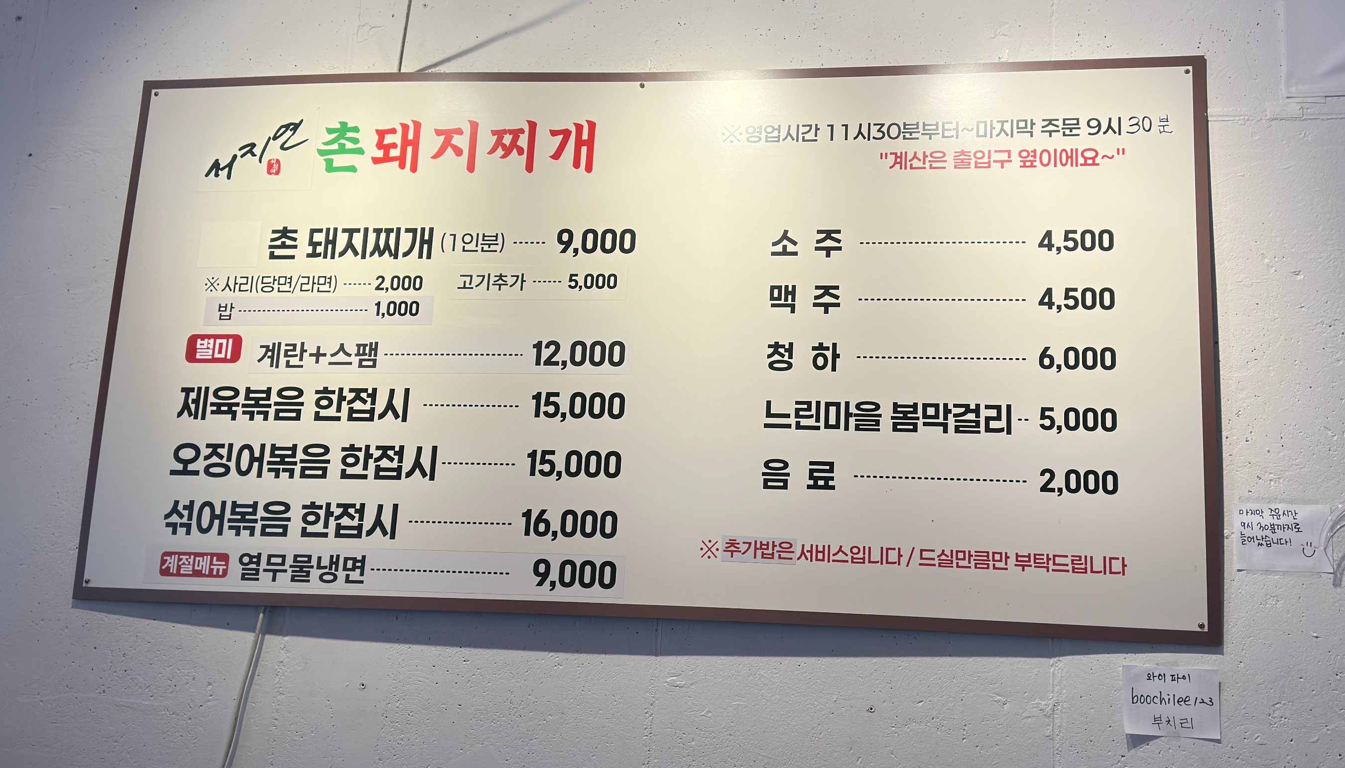 - 상호명 : 서지연 촌돼지찌개