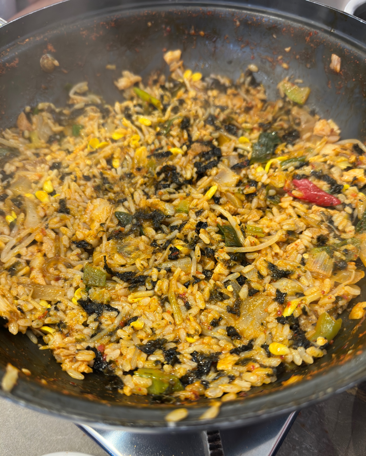 식사 마무리는 역시 볶음밥이죠! 남은 양념에 셀프바에서 가져온 참기름, 김가루, 콩나물을 넣어 볶아 먹었는데, 고소하면서도 담백해서 최고의 한 끼였습니다.