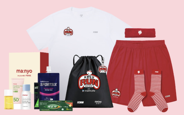 레이스팩에는 배번호표, 티셔츠 (FCMM), 반바지, 양말, 헤어밴드, 짐색, 키링, 마녀공장 키트 구성 3종, 대상웰라이프 뉴케어 SPORTSIX 리바이탈 드링크 1팩, 익스트림 블랙마카 젤리스틱 1포, 베로카 멀티비타민앤미네랄 15정 1팩이 포함