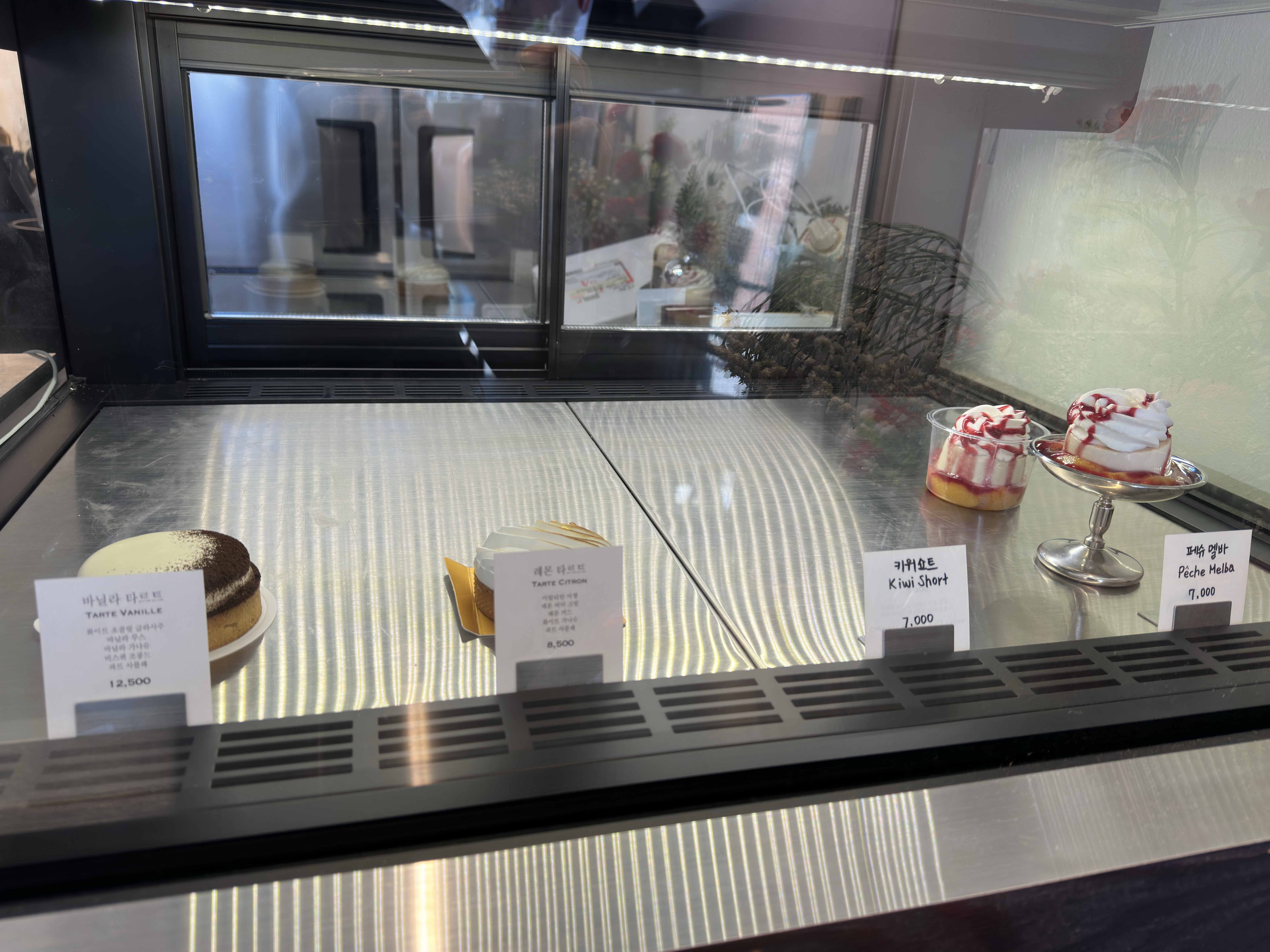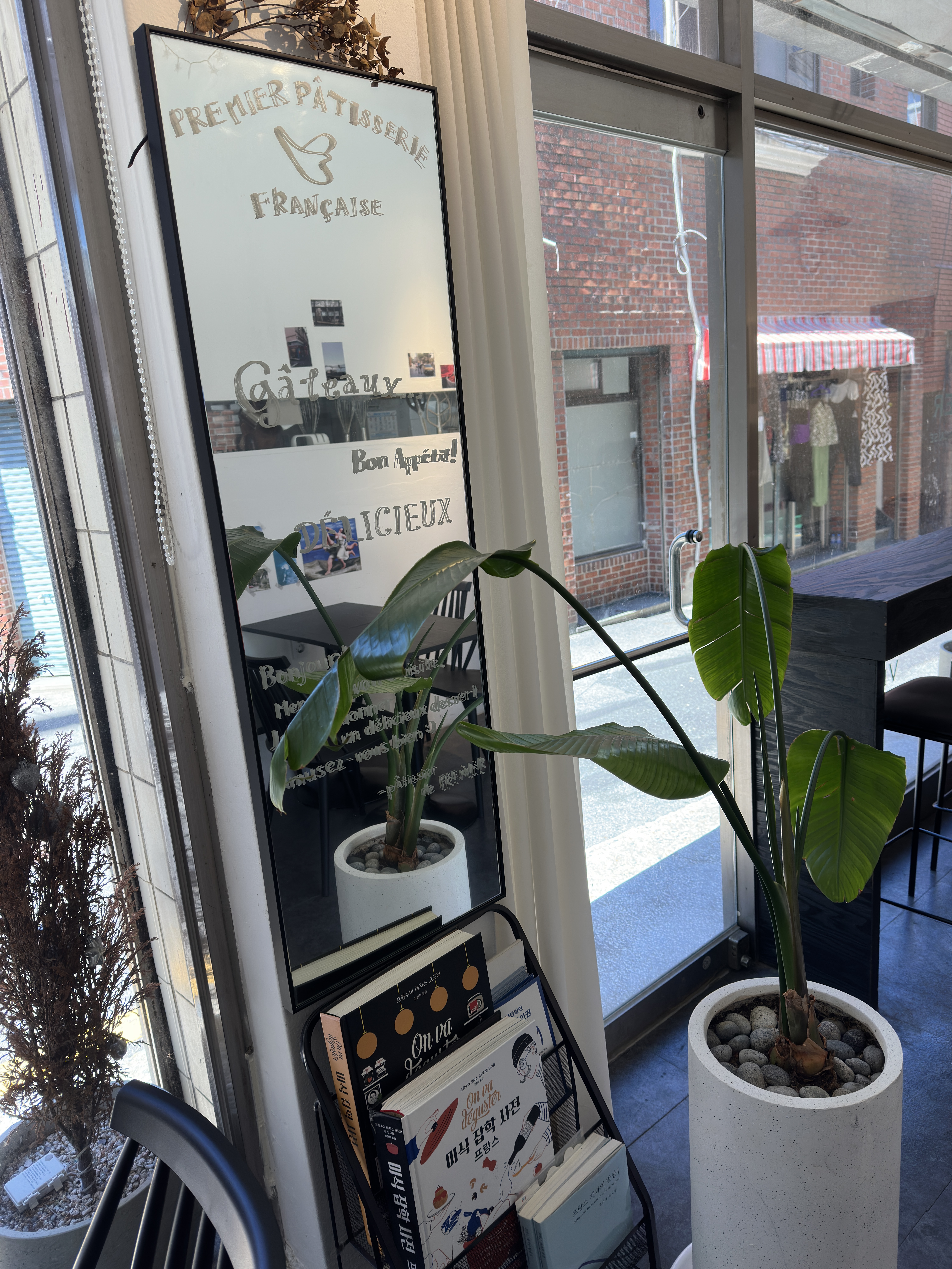 카페 내부는 조용하고 정갈하며, 휘낭시에나 타르트, 구움과자 등 정통 프랑스 디저트류가 눈을 사로잡는 곳이었어요.