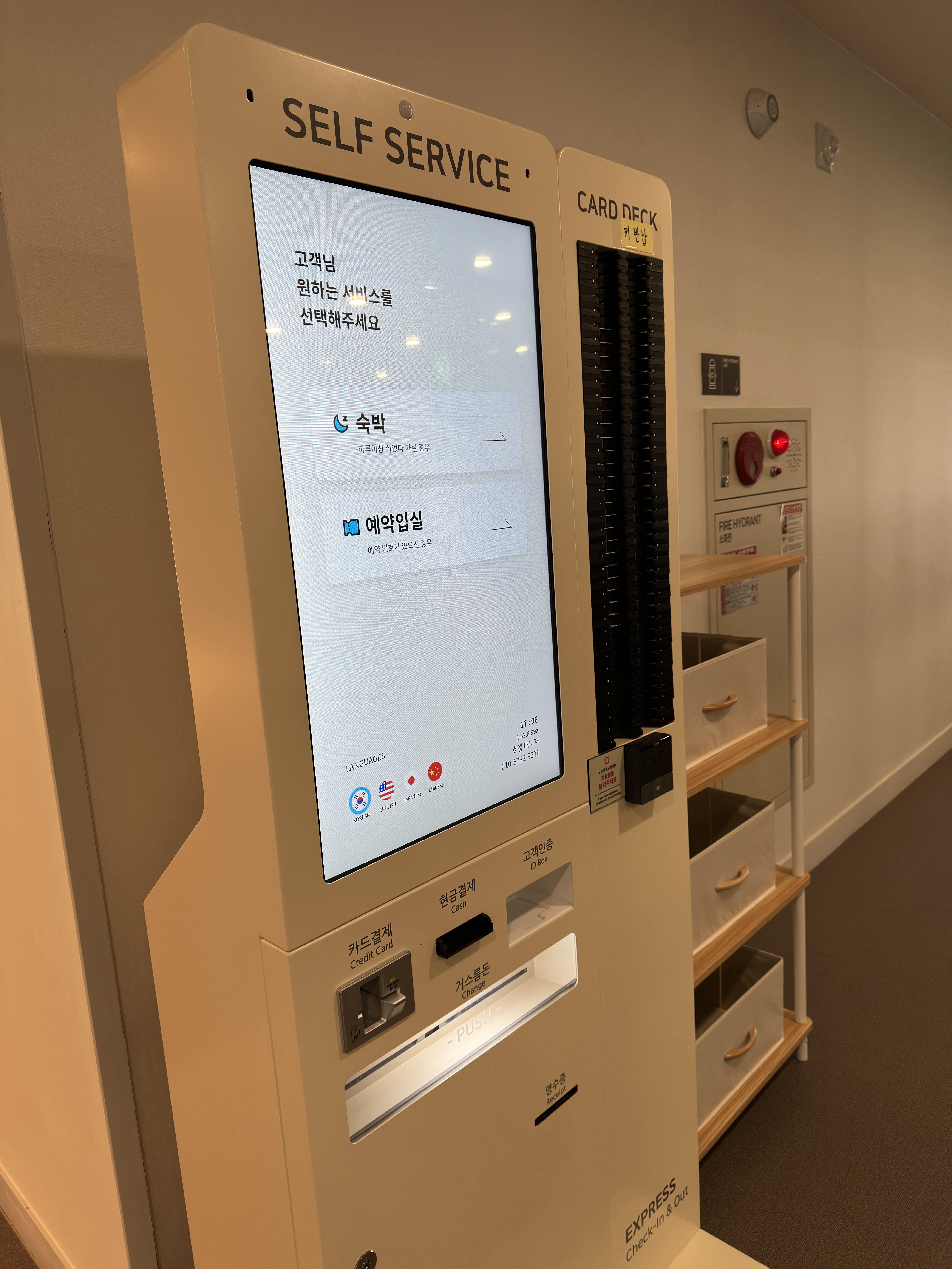 아늑호텔은 무인 키오스크 셀프 체크인 시스템을 운영하고 있어 번거로운 프런트 대면 절차 없이 입실이 가능합니다.