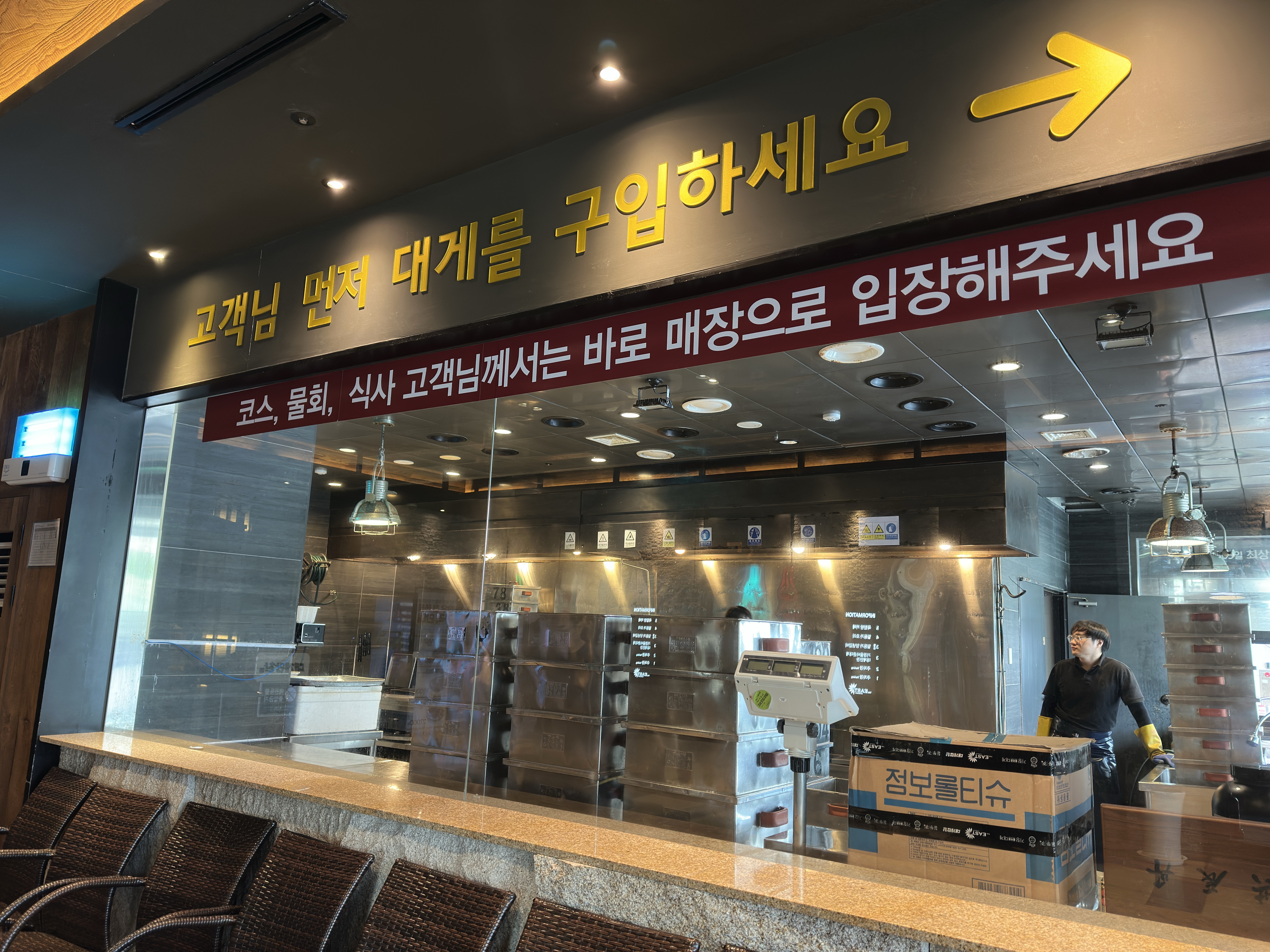대게만찬에 도착하자마자 가장 먼저 반가웠던 점은 넉넉한 주차 공간이었습니다. 생신날 부모님과 함께 움직이기엔 주차 스트레스가 없다는 게 큰 장점이죠. 매장 안도 넓고 깔끔한 분위기여서 만족스러웠어요