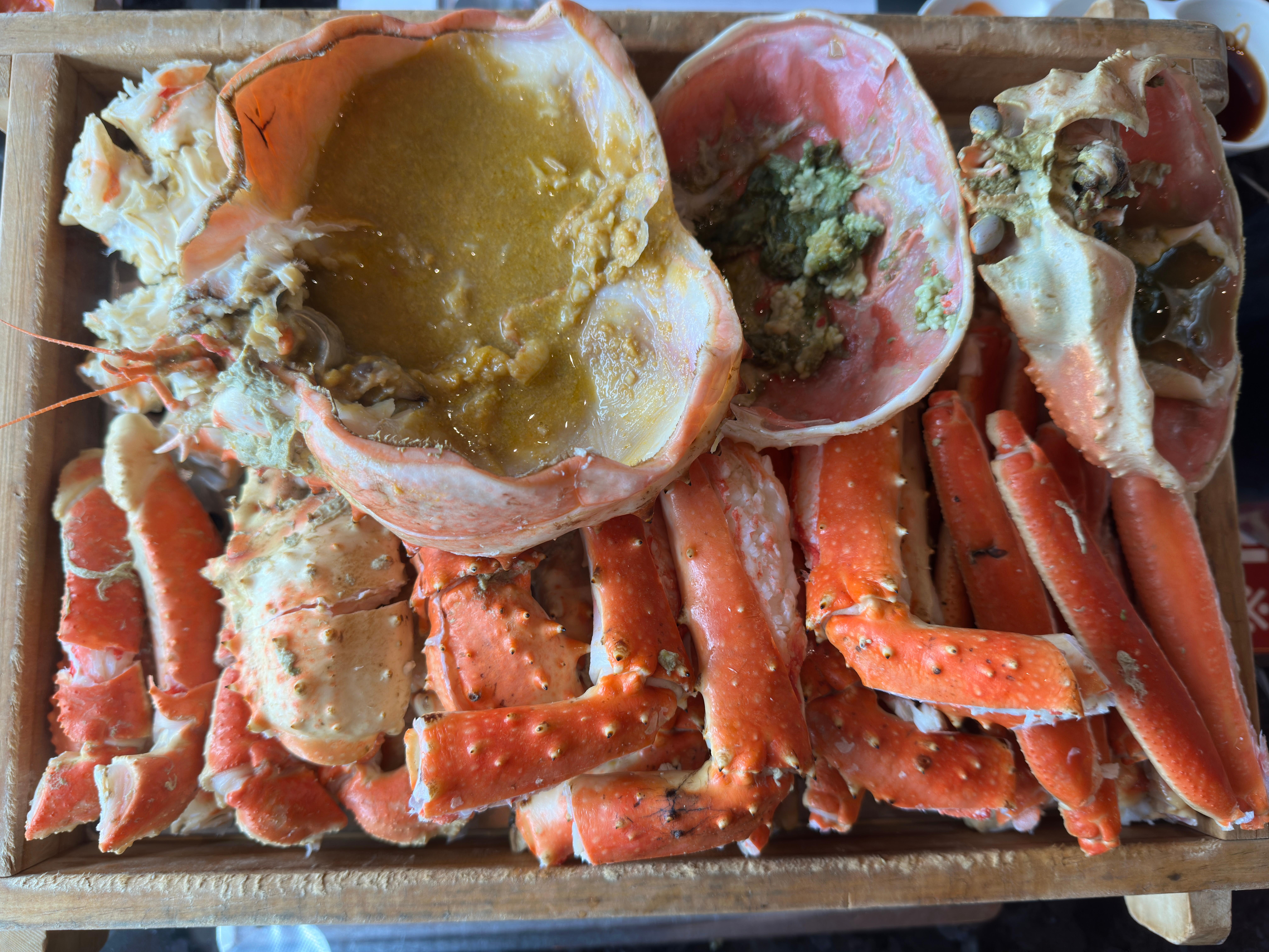 우리는 코스요리가 아닌, 직판장에서 직접 대게와 킹크랩을 골라 먹는 방식을 선택했어요. 직원분께서 친절하게 구성을 추천해 주셨는데요, 전문가의 말을 듣는 게 역시 정답이었습니다!