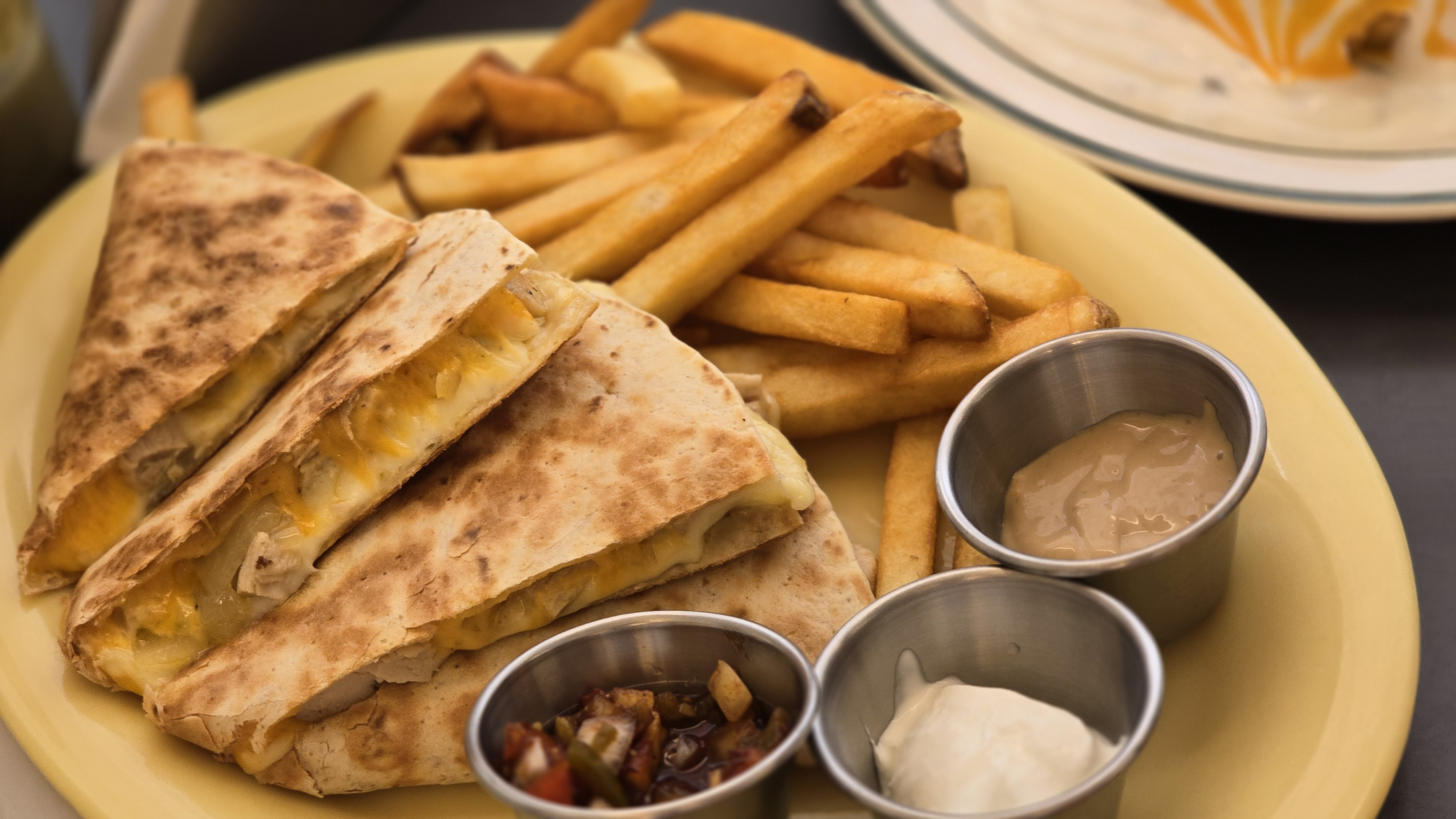 바삭한 또띠아 안에 통통한 새우와 치즈가 가득 들어있는 퀘사디아는 고소한 맛과 매콤한 소스의 조화가 일품입니다. 감자튀김과 함께 제공되어 든든한 한 끼 식사로도 손색이 없습니다.