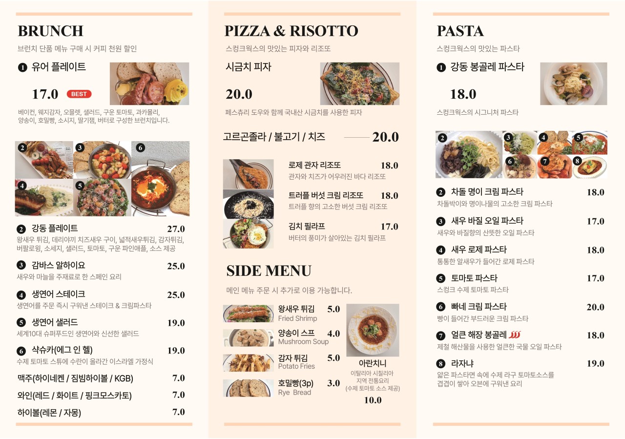 | 🍅 샥슈카(에그인헬) | 19,000원 | 토마토소스 베이스, 살짝 매콤한 풍미로 브런치 느낌 |
