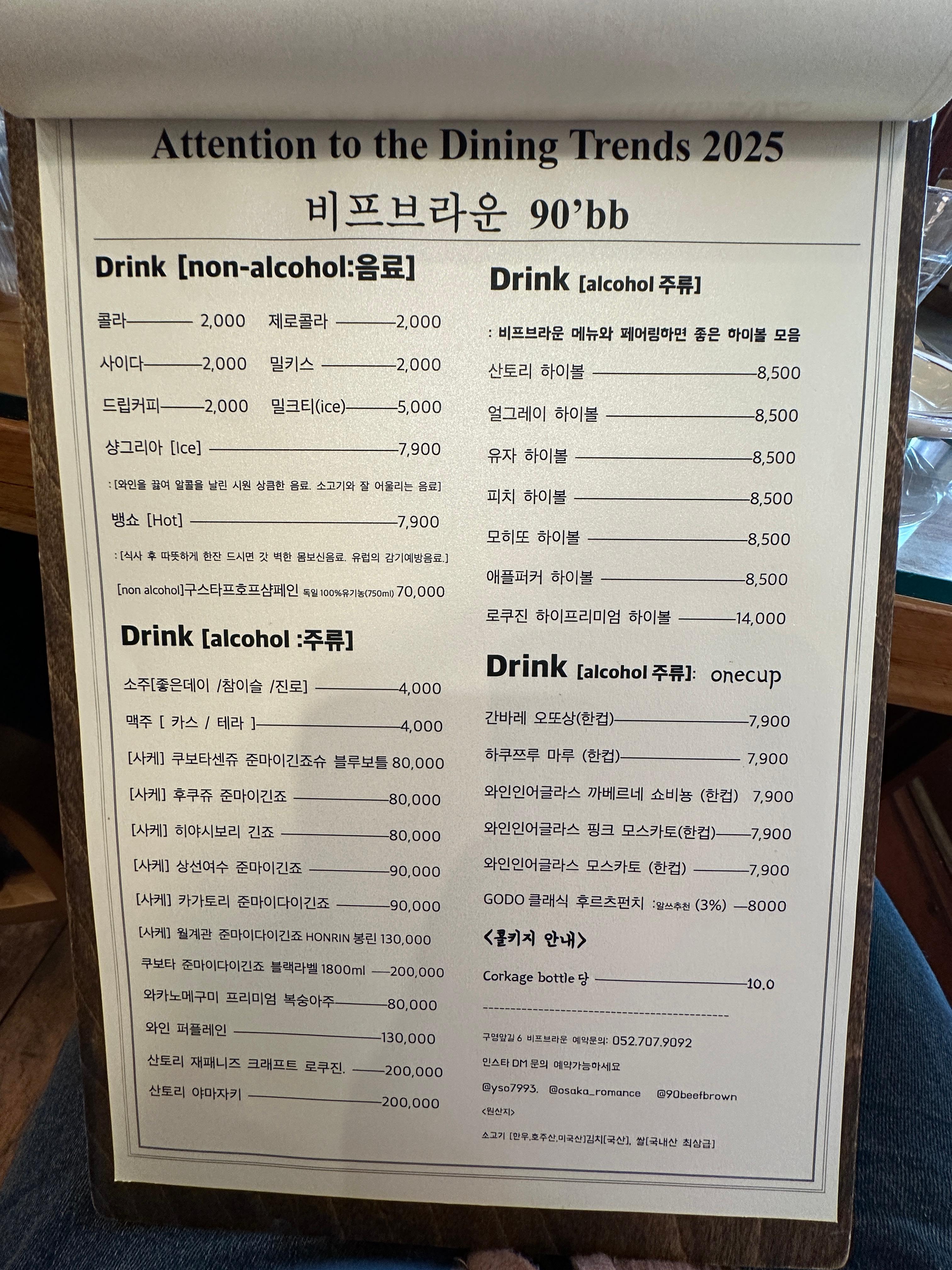 - 콜키지 서비스(병당 10,000원)를 제공하여, 원하는 주류를 가져올 수 있습니다.