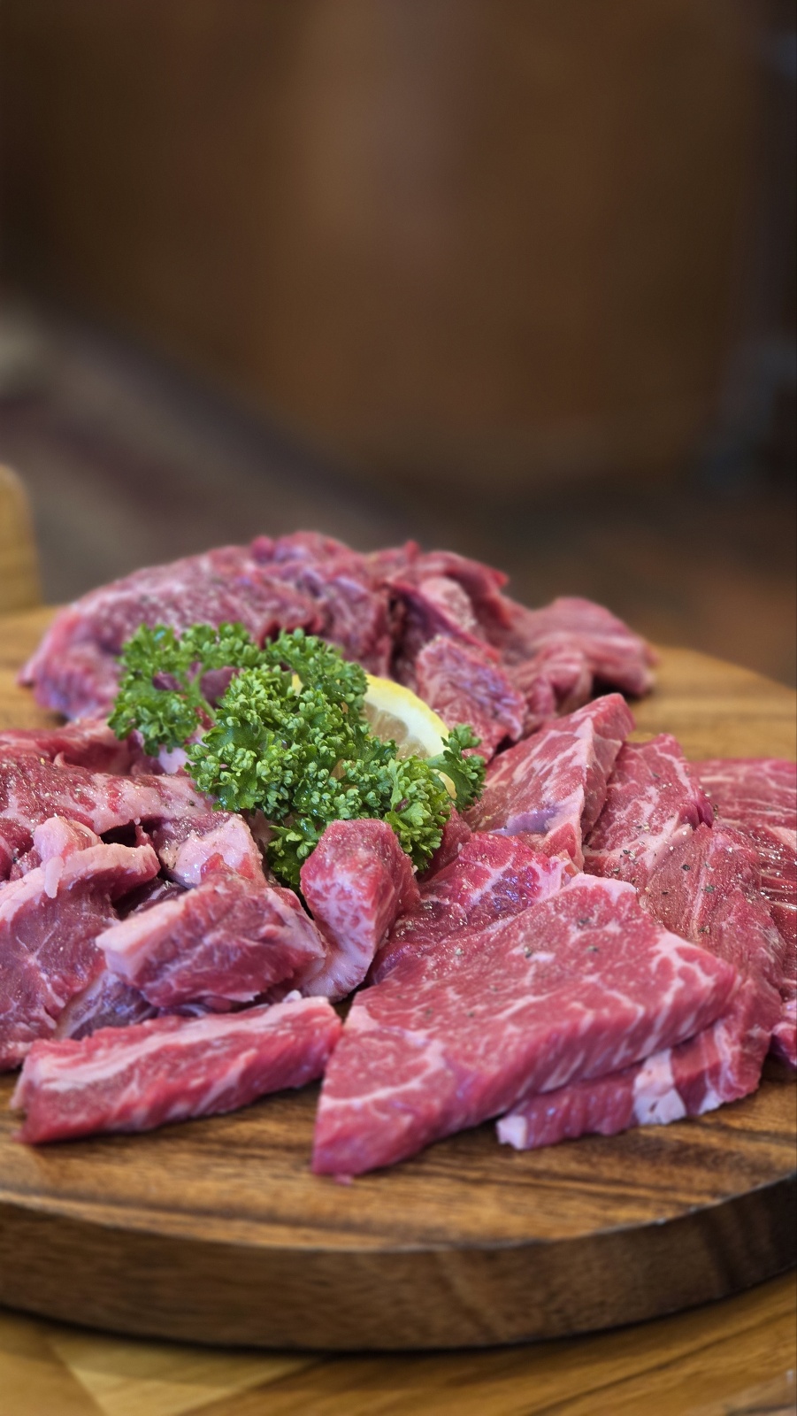 비프브라운은 외관부터 내부까지 우드톤의 감성적인 인테리어로 꾸며져 있어, 마치 카페나 레스토랑에 온 듯한 분위기를 자아냅니다. 입구에 들어서면 향초 향이 은은하게 퍼집니다. 또한, 야외 마당에는 캠핑 분위기를 느낄 수 있는 공간이 마련되어 있어, 식사 후 여유로운 시간을 보내기에 좋습니다.