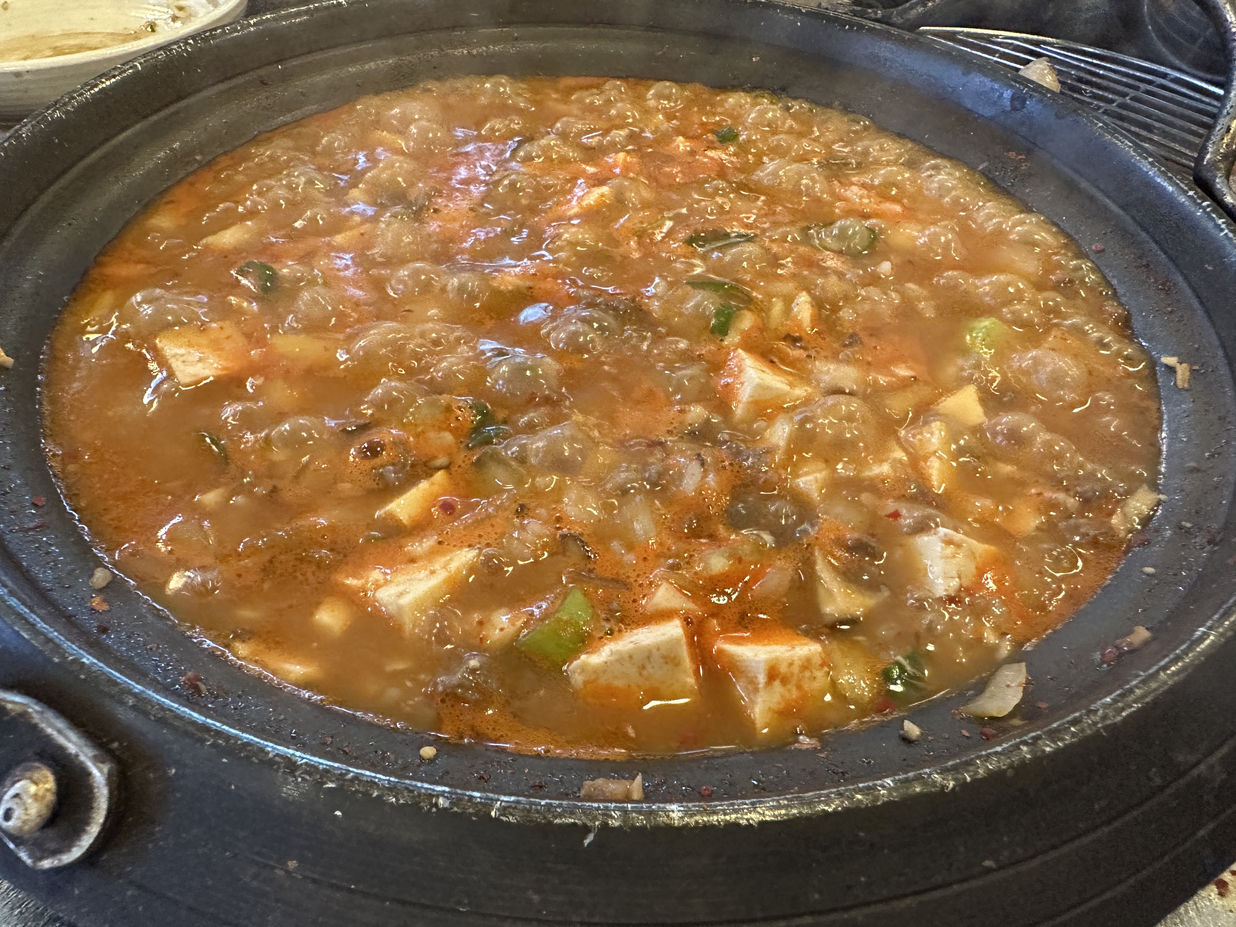 이번 방문은 된장을 전골냄비로 받았고, 여기에 밥을 말아 ‘술밥’처럼 먹으니 뚝배기보다 확실히 더 맛있었어요. 전골냄비는 면적이 넓어 은근 끓임이 안정적이라 밥알 코팅이 좋아지고, 국물·밥·고기의 밸런스가 완성됩니다.