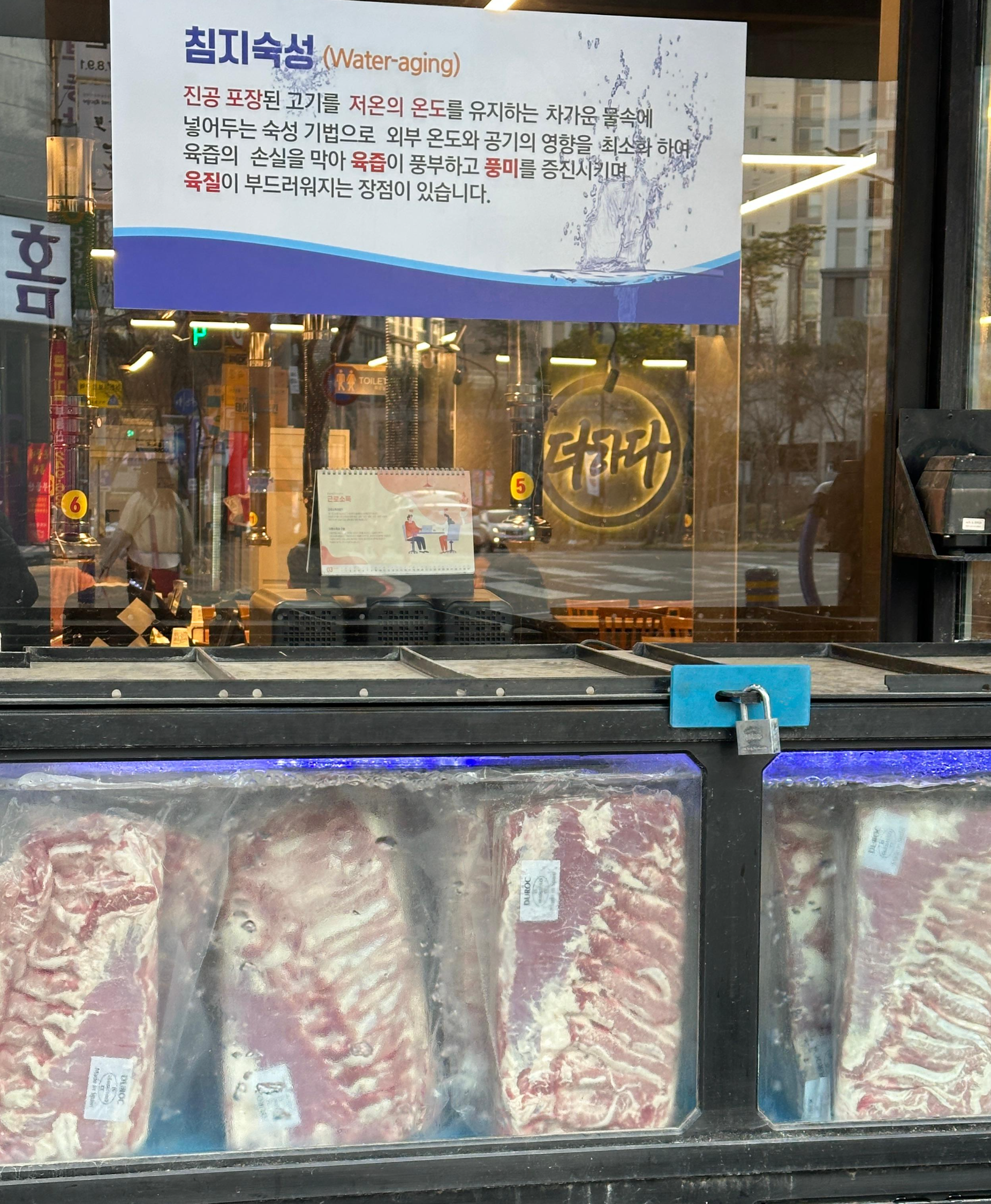 가게 앞에는 진공 포장된 고기들이 가득 있었는데