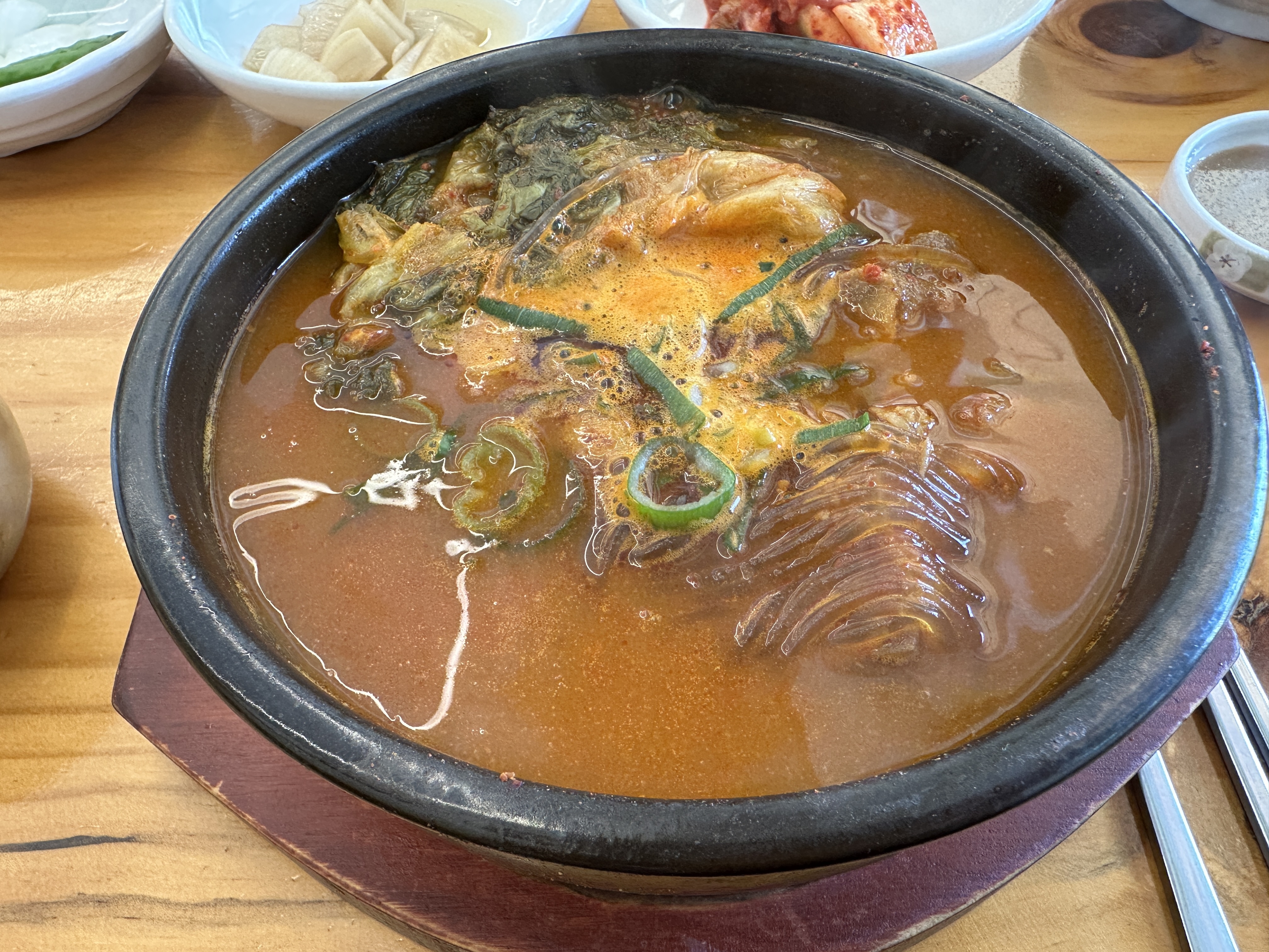 고기는 큼직한 뼈가 세 덩어리 정도 들어 있었고, 살도 제법 붙어 있어서 발라먹는 재미가 있었어요. 다만 국물 맛은 강렬하거나 깊은 맛보다는 무난한 편이었습니다. 자극적이거나 특별히 진한 맛을 기대하셨다면 약간 아쉬울 수도 있어요. 하지만 깔끔하게 속을 달래주는 느낌으로는 충분했답니다.