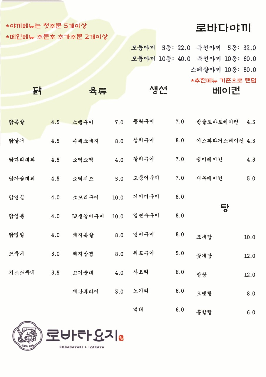 | 🕒 영업시간 | 금, 토 : 17:00 ~ 03:00 그 외 : 17:00 ~ 02:00 |
