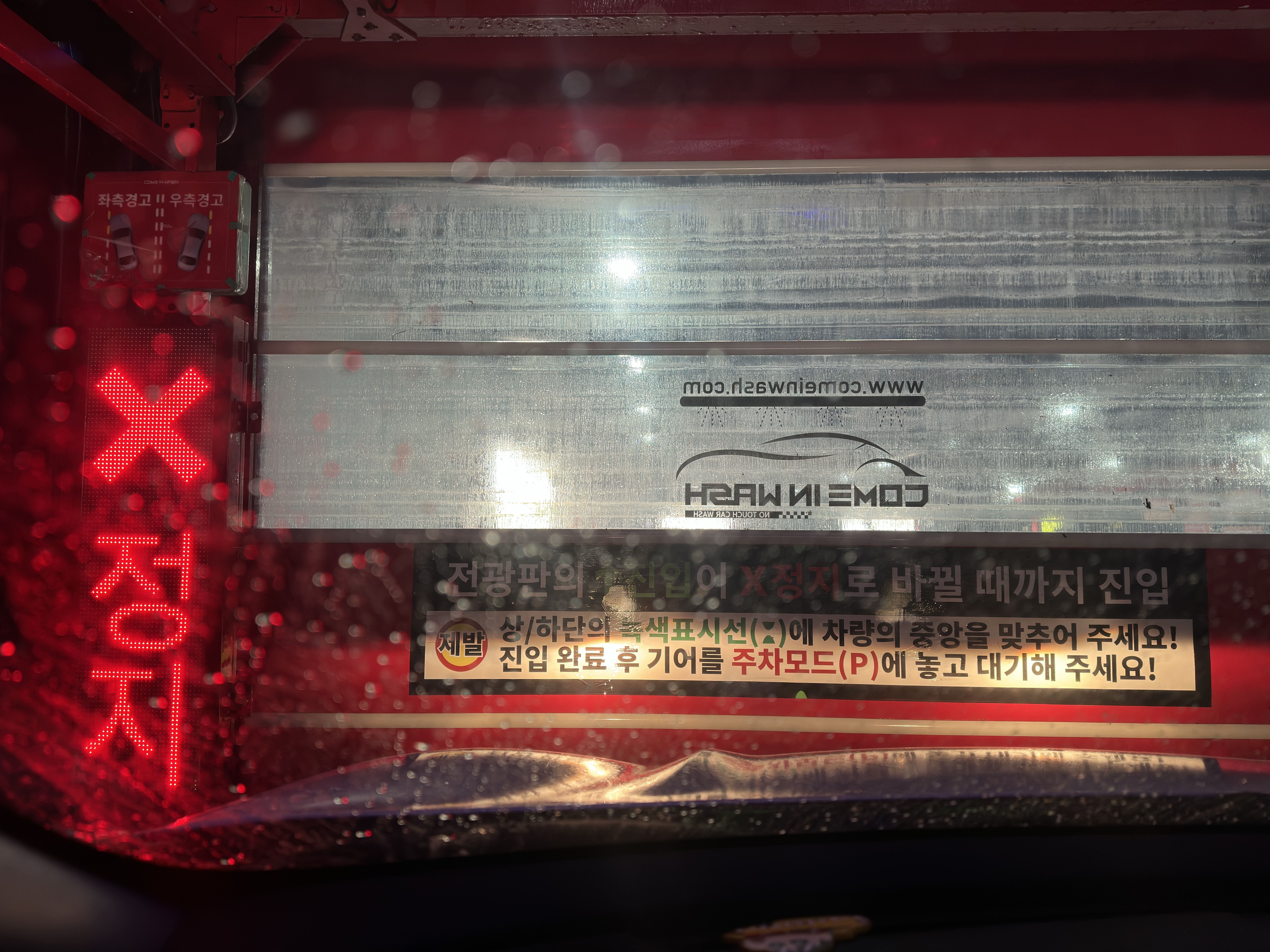 - 마지막으로, 사이드미러는 접지 않아도 됩니다. 세차 설비가 차량과 직접 닿지 않는 노터치 방식이기 때문에, 접지 않아도 안전하게 세차가 가능합니다.