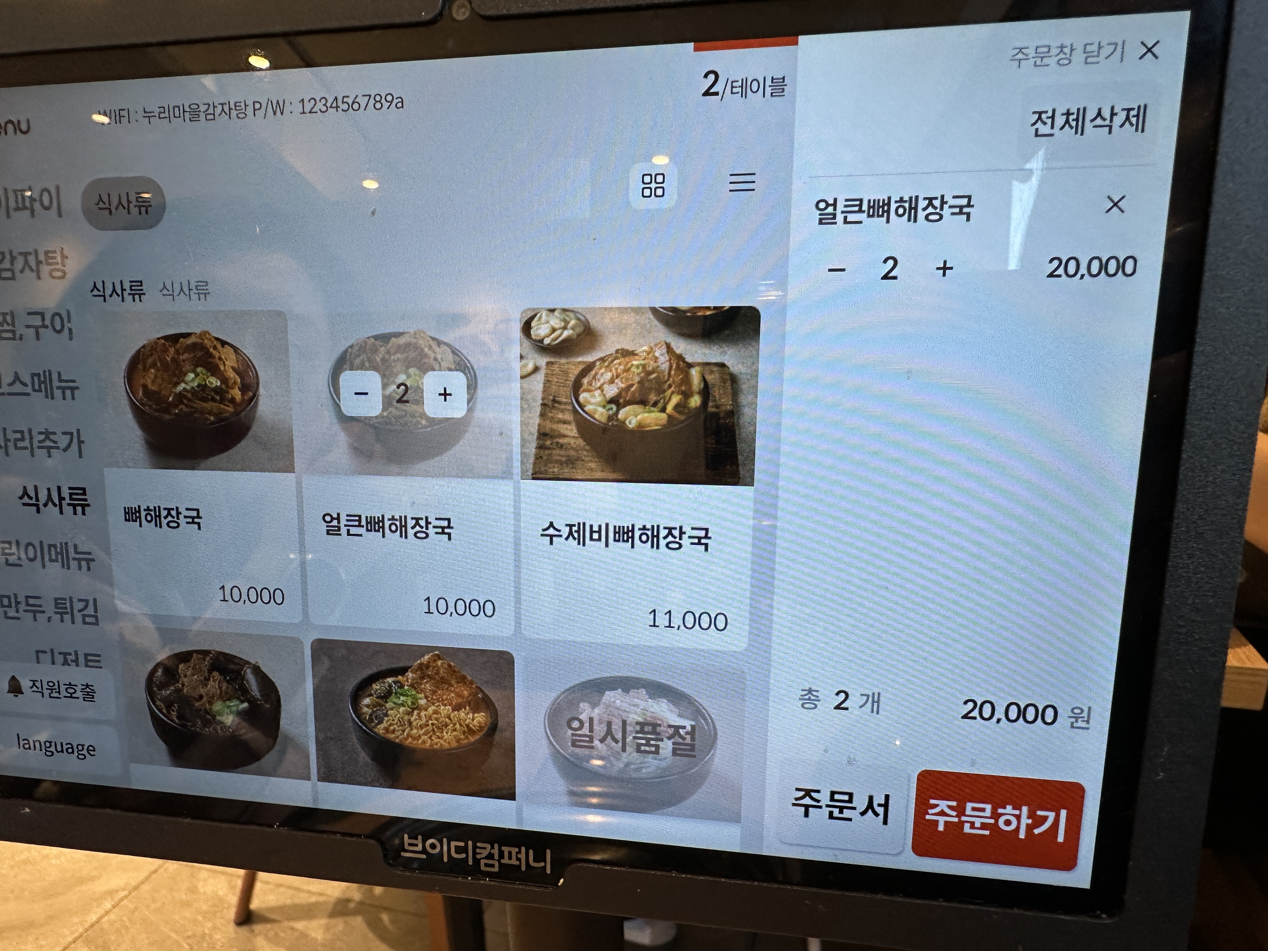 저희는 얼큰뼈해장국 2개를 주문했습니다.