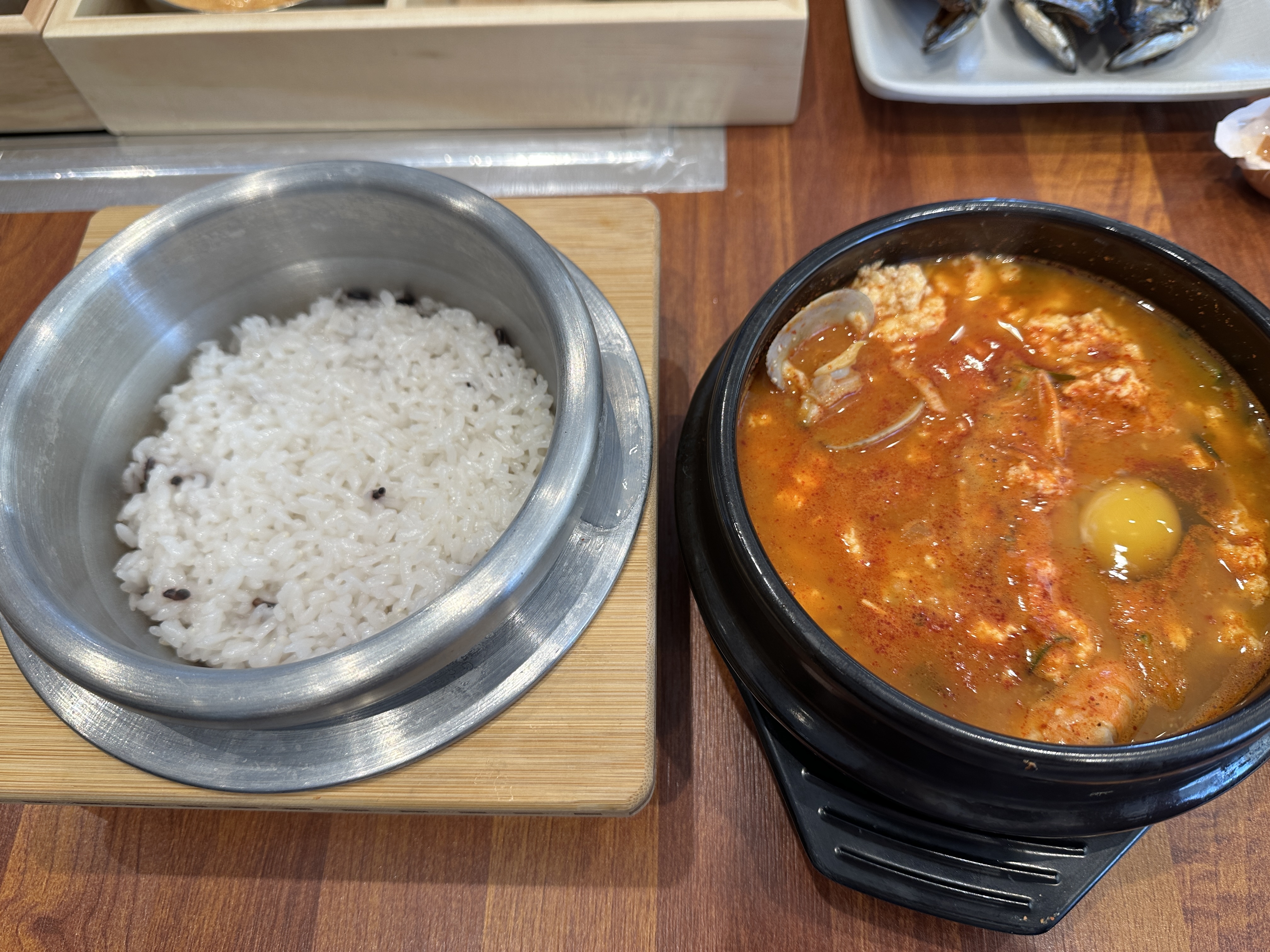 ✔️ 순두부 + 솥밥 + 고등어구이 조합 든든