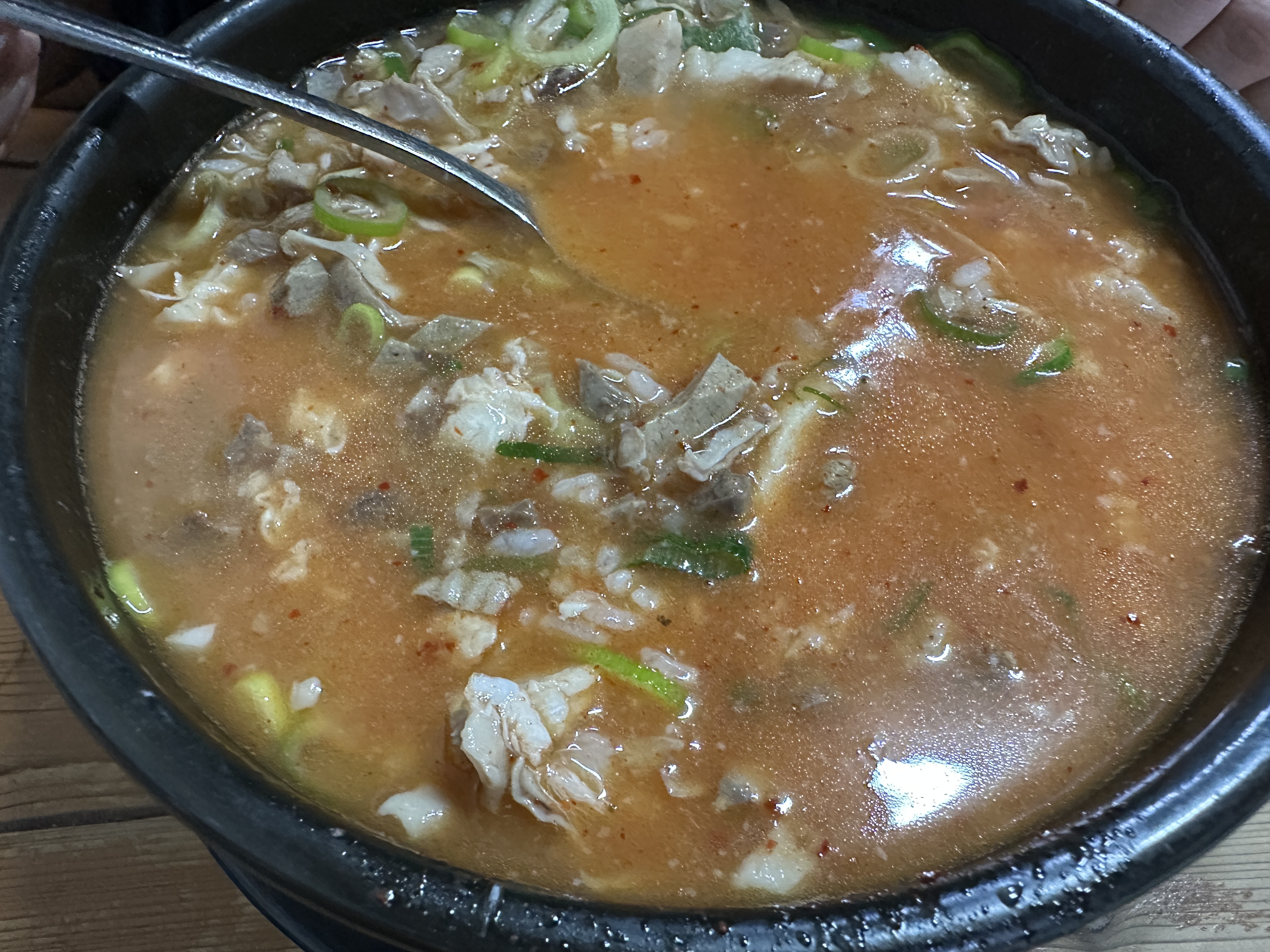 국밥 위에 고추가루가 뿌려져서 나와요.