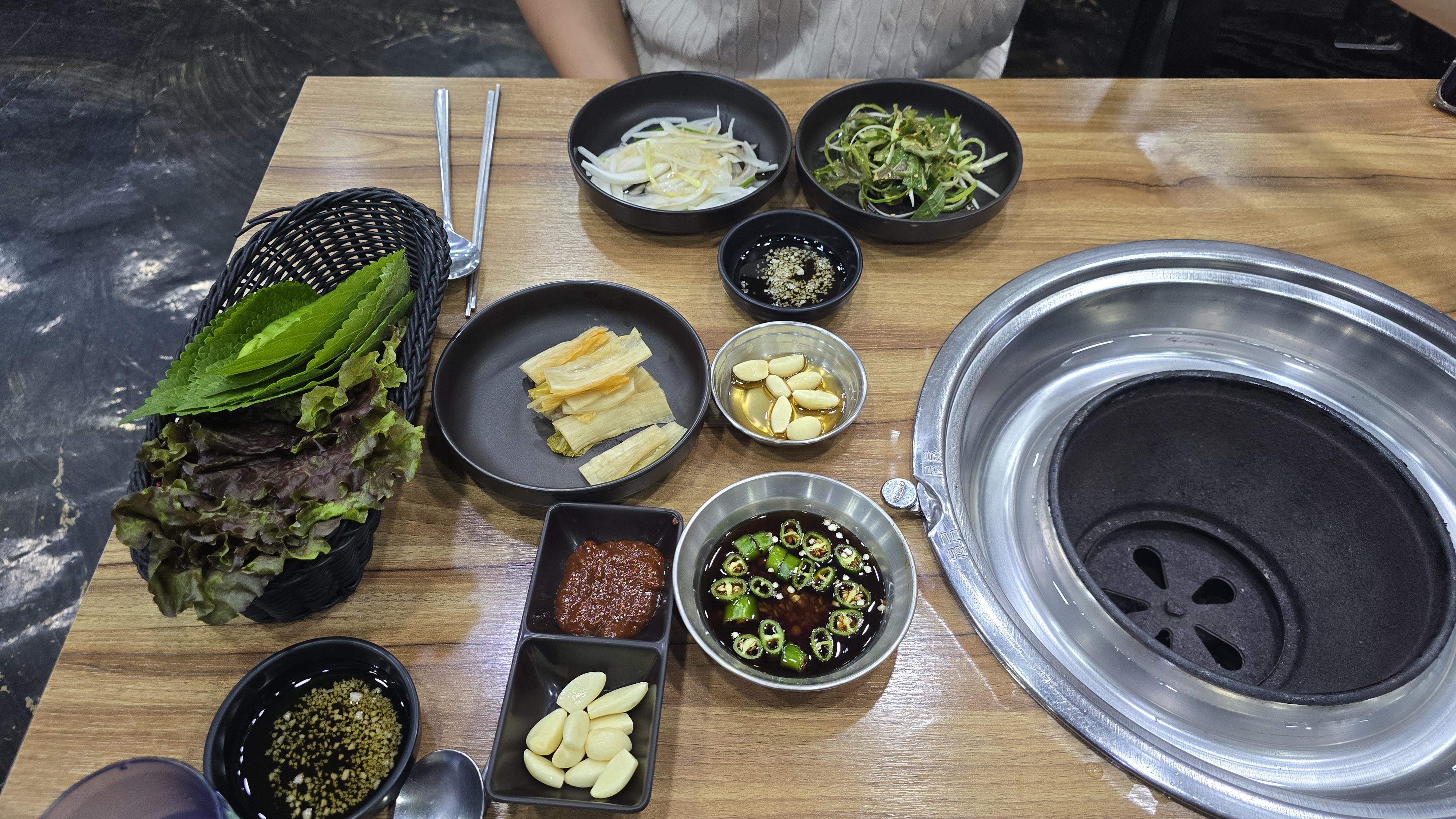 상추, 깻잎, 마늘, 쌈장 등 기본 찬 외에도