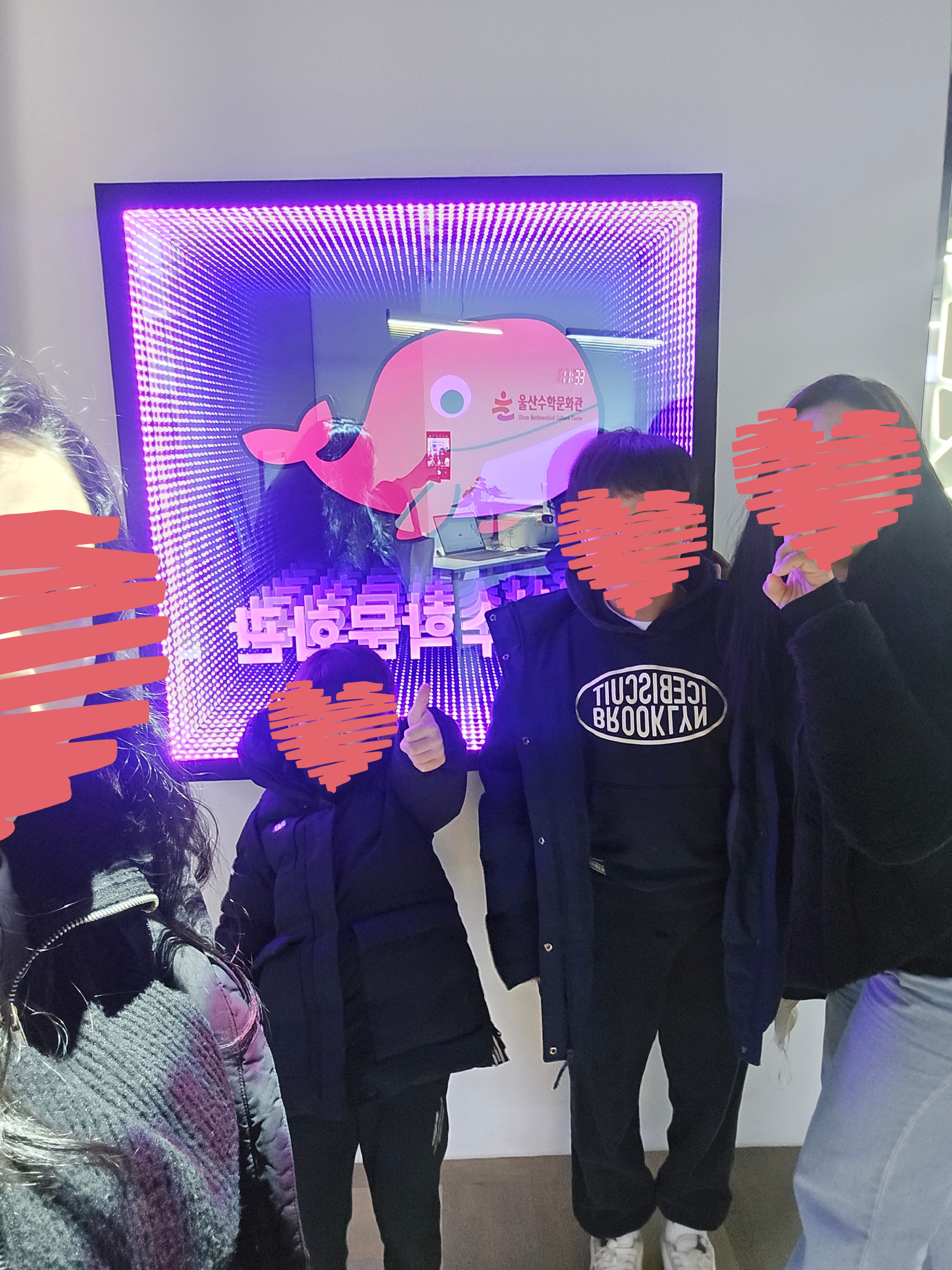 중간중간 쉬어갈 수 있는 공간도 마련돼 있어 아이들이 지치지 않고 체험을 이어갈 수 있었어요. 조카들이 “수학이 이렇게 재미있는 줄 몰랐어!”, “다음에 또 오고 싶어!”라고 말하는 걸 들으며, 아이들에게 새로운 시각으로 수학을 접하게 해준 것 같아 뿌듯했어요😊 체험을 마치고 나오는 길에 인증샷도 남겼답니다 📸
