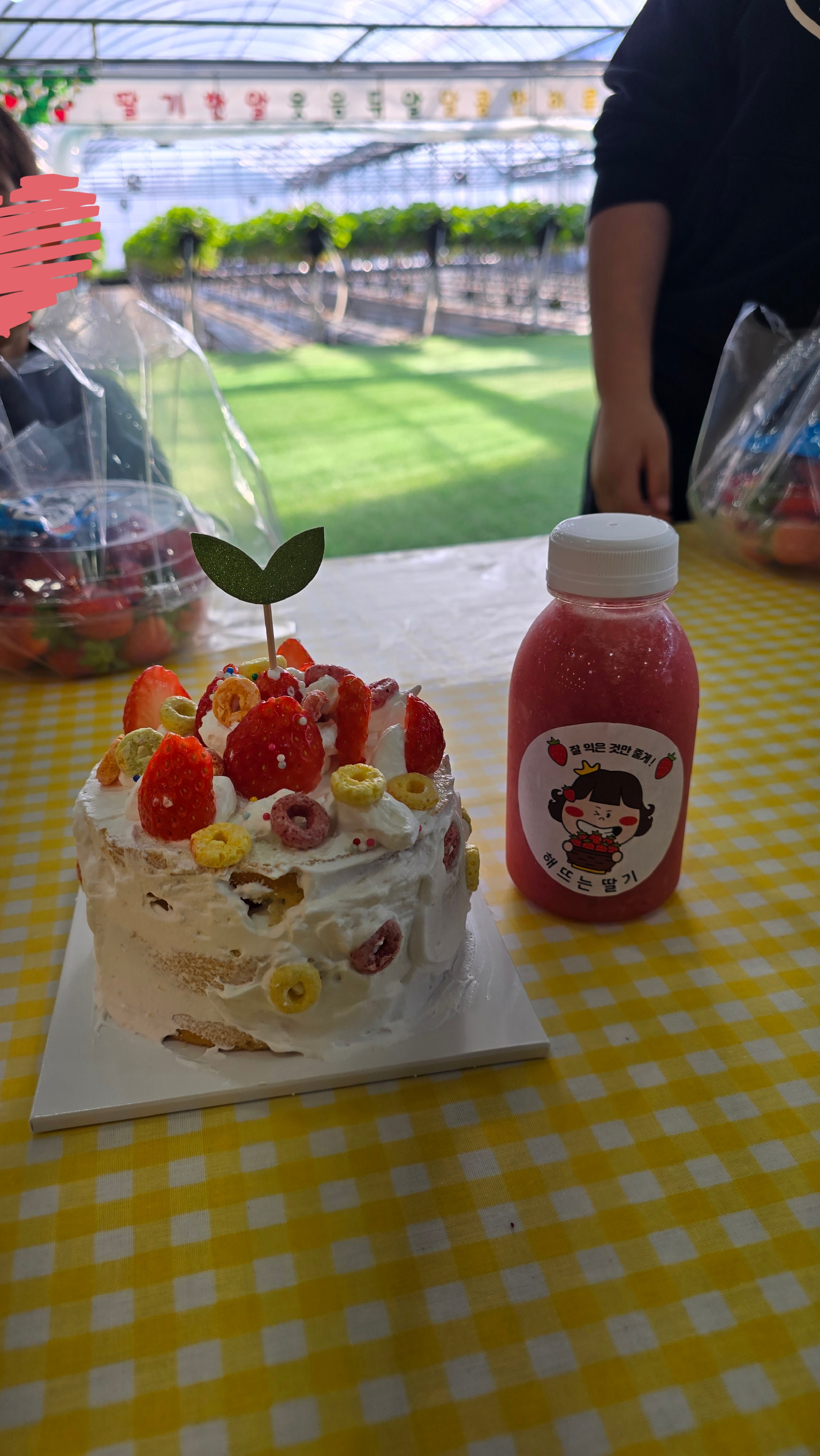 - 딸기 1kg 따기 + 딸기 케이크 만들기 + 딸기 라떼 2잔 ← 이 패키지 선택함