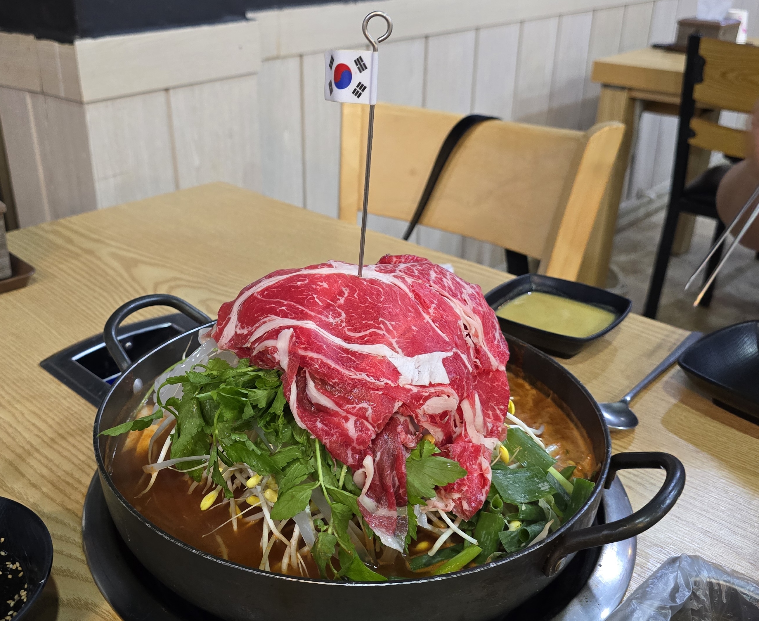 샤브샤브처럼 얇은 고기가 부드럽게 익고, 국물은 칼칼하면서도 진한 맛이 매력적이에요.