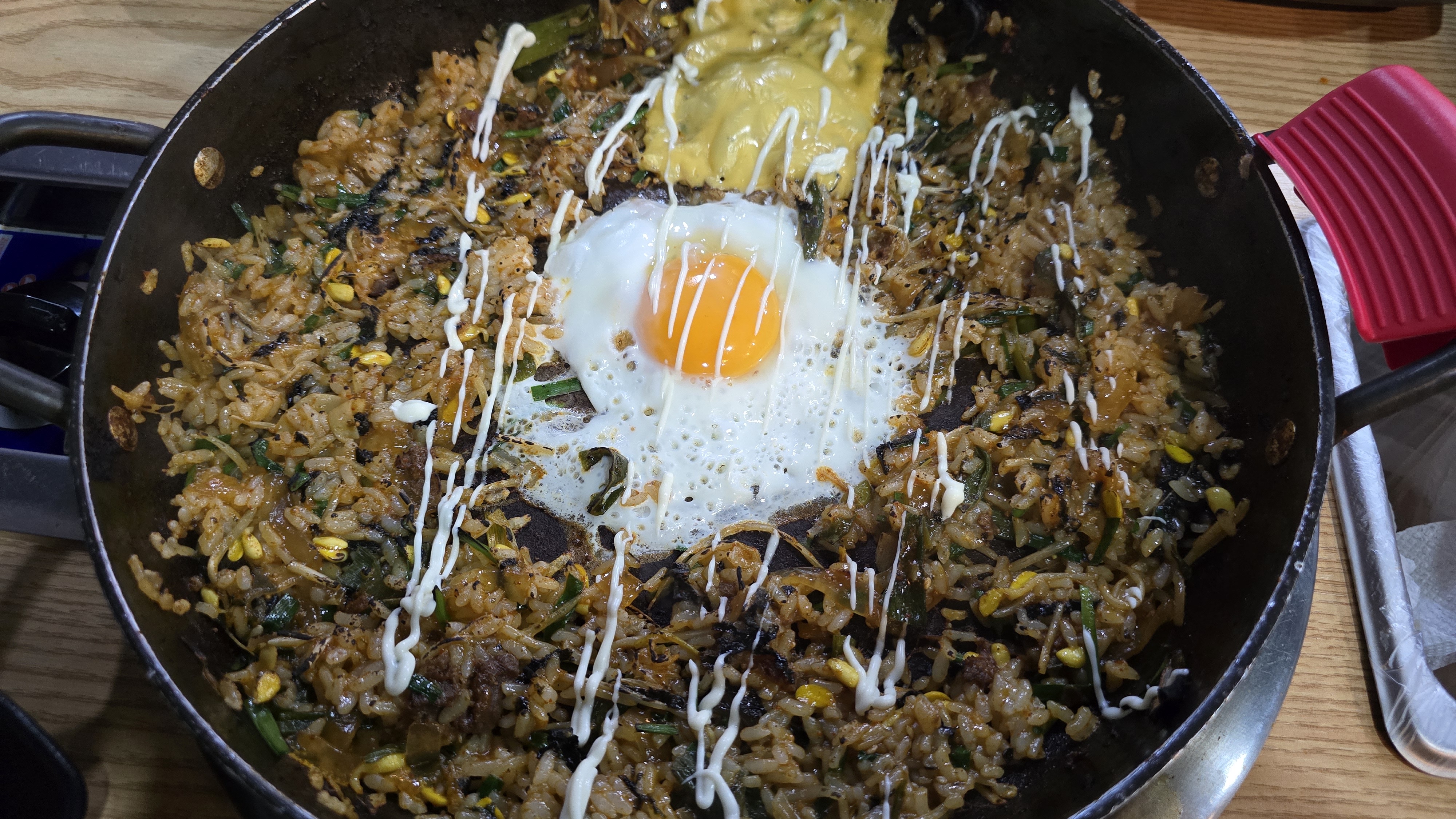 이곳은 사장님이 냄비째로 가져가서 직접 볶아주신 뒤, 완성된 볶음밥을 다시 테이블로 가져다 주세요.