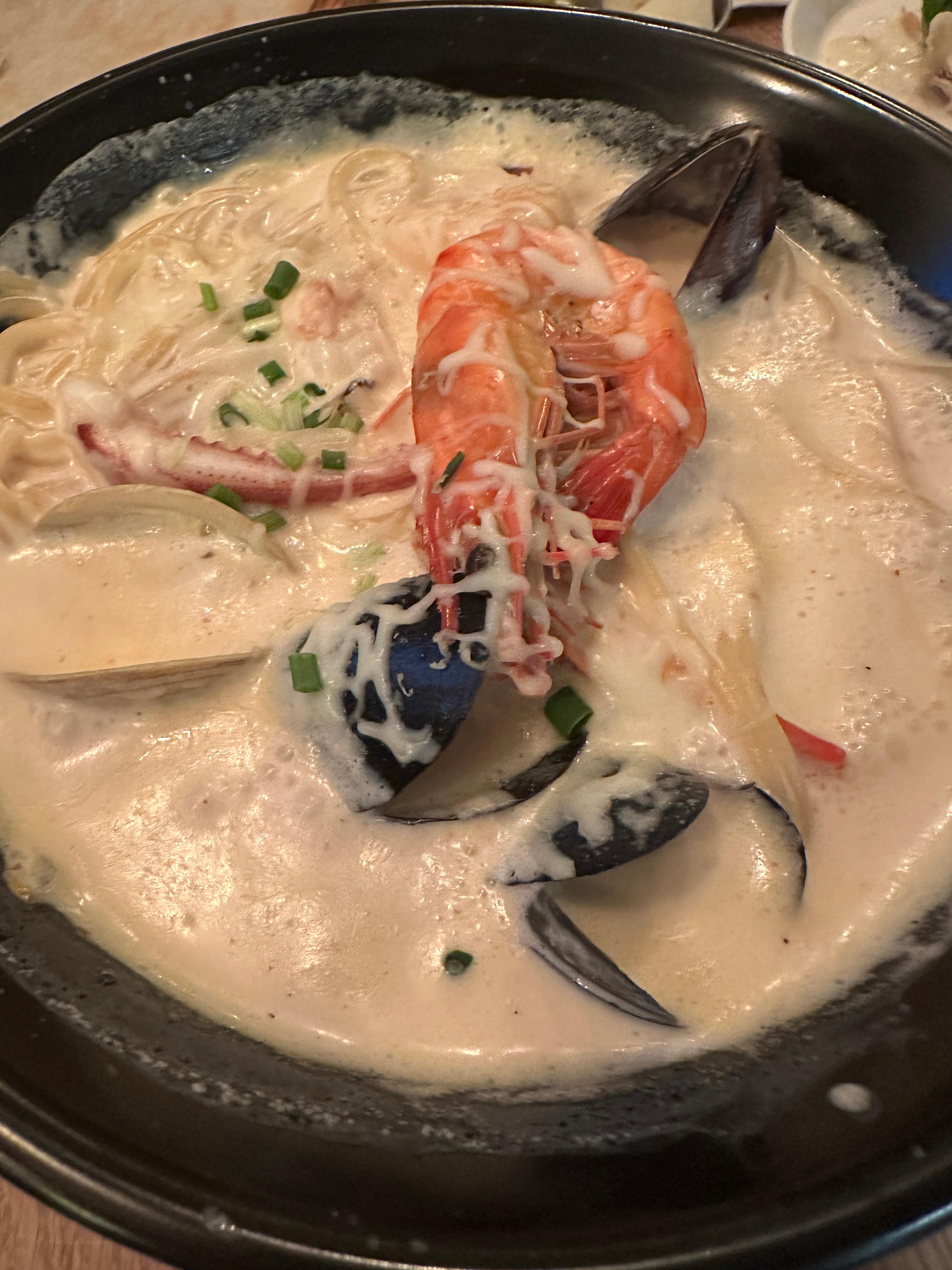 🍲 뚝배기 해산물 크림 파스타(18,000원)