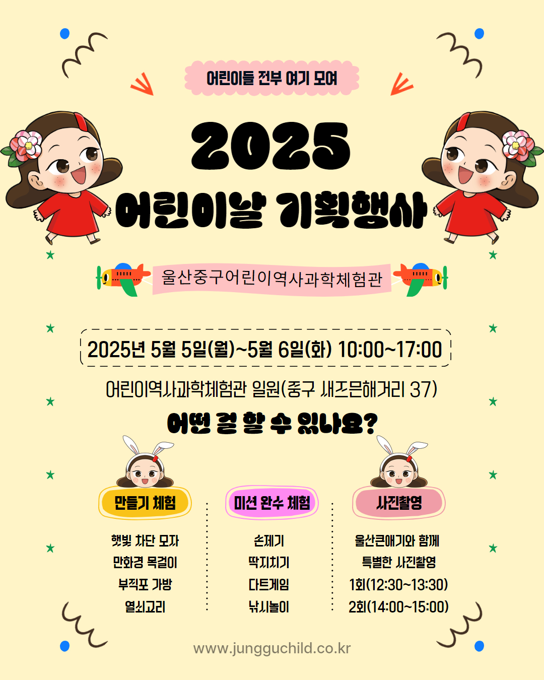 - ☑️ 예약 홈페이지 : https://yes.ulsan.go.kr/search?total_search_word=%EC%96%B4%EB%A6%B0%EC%9D%B4%EB%82%A0+%EB%AC%B8%ED%99%94%ED%96%89%EC%82%AC