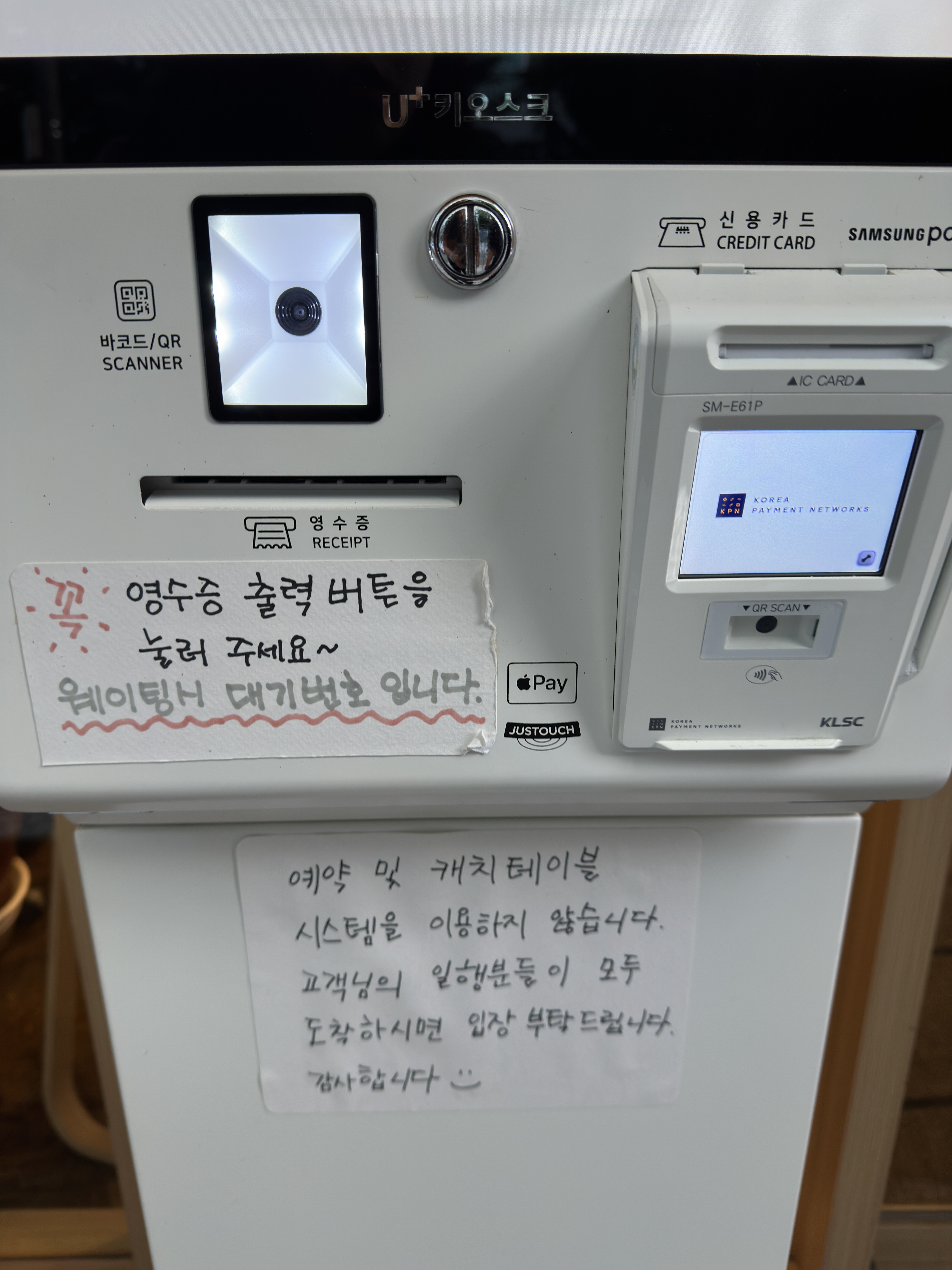 웨이팅이 있을 시 영수증이 대기번호이므로 꼭 영수증 출력을 해야합니다