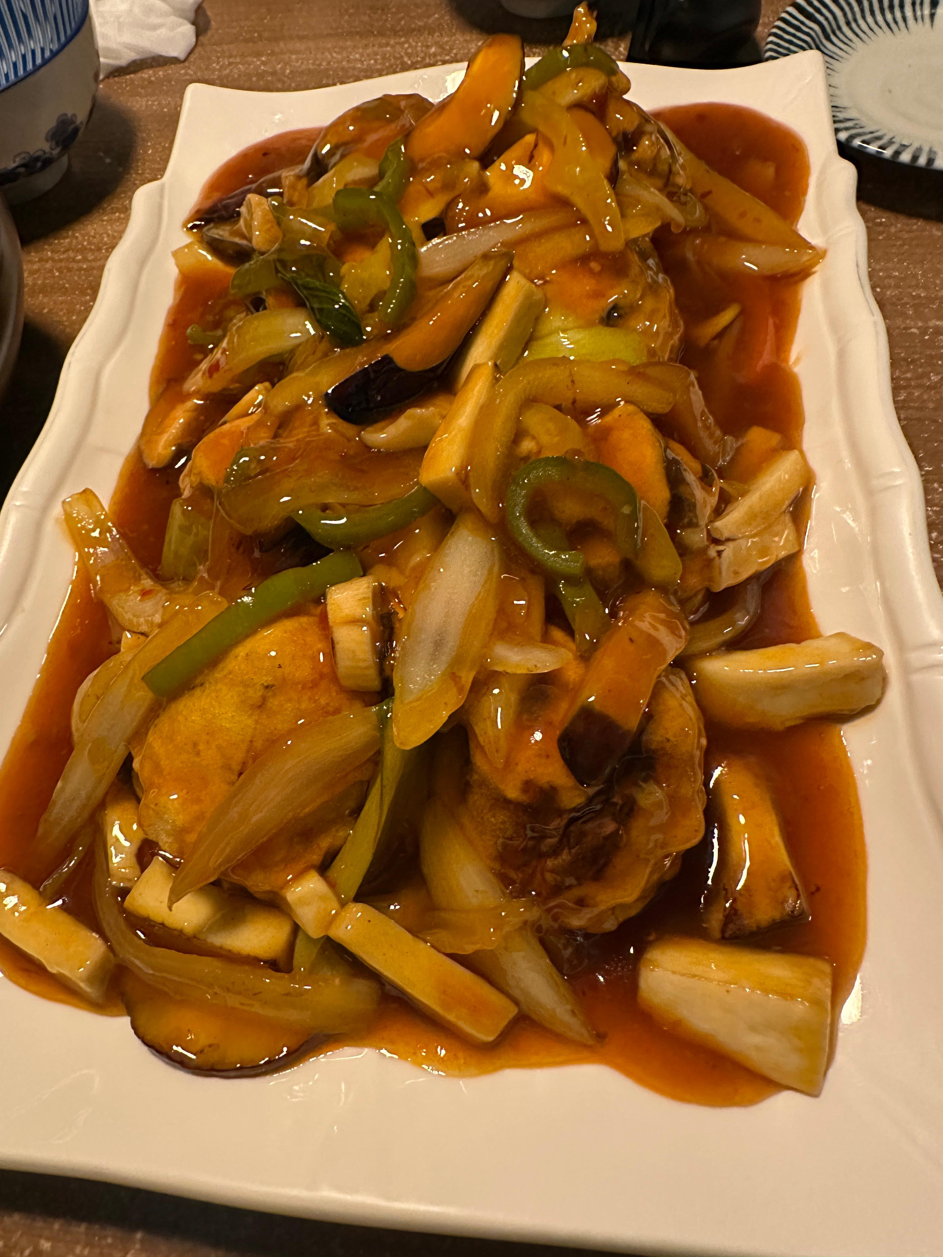 바삭한 가지튀김에 진한 소스, 꽉 찬 새우살까지 술안주로 딱이에요.