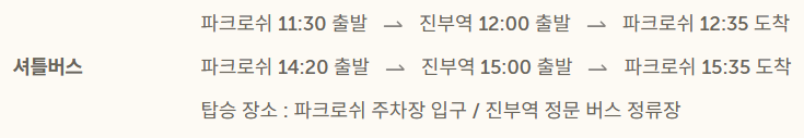 진부역에서 파크로쉬까지는 약 25분 소요됩니다. 이동 수단은 크게 2가지예요. 저희는 셔틀버스 시간과 맞지 않아 계속 택시를 이용했어요