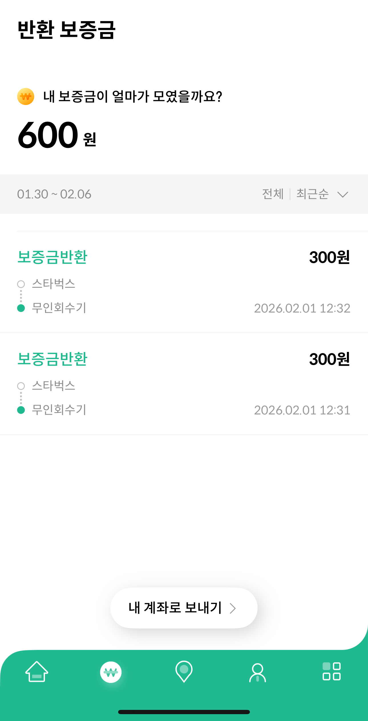 👉 총 600원 반환 완료!