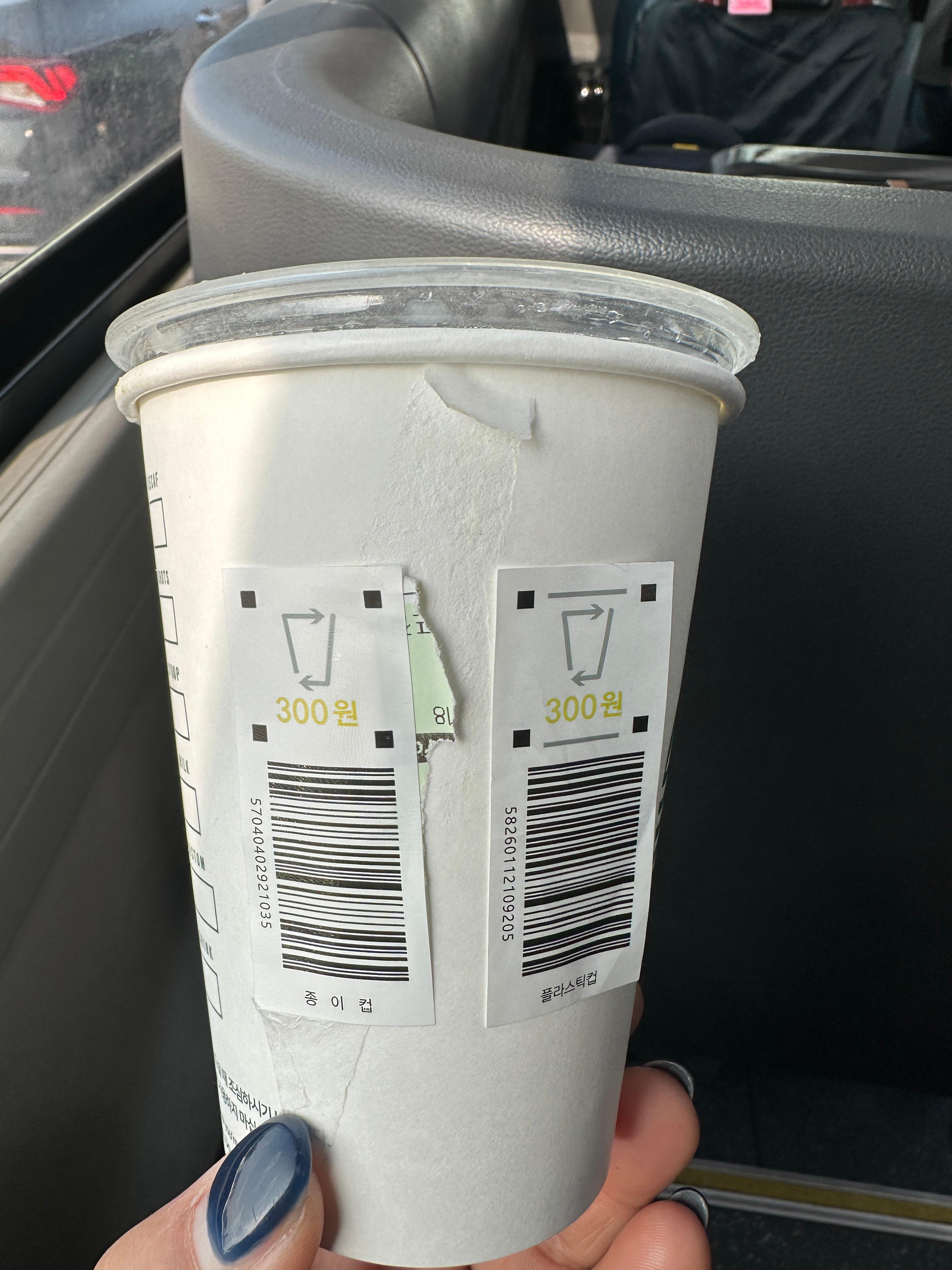 일회용컵에 300원 보증금이 붙어 있더라고요.