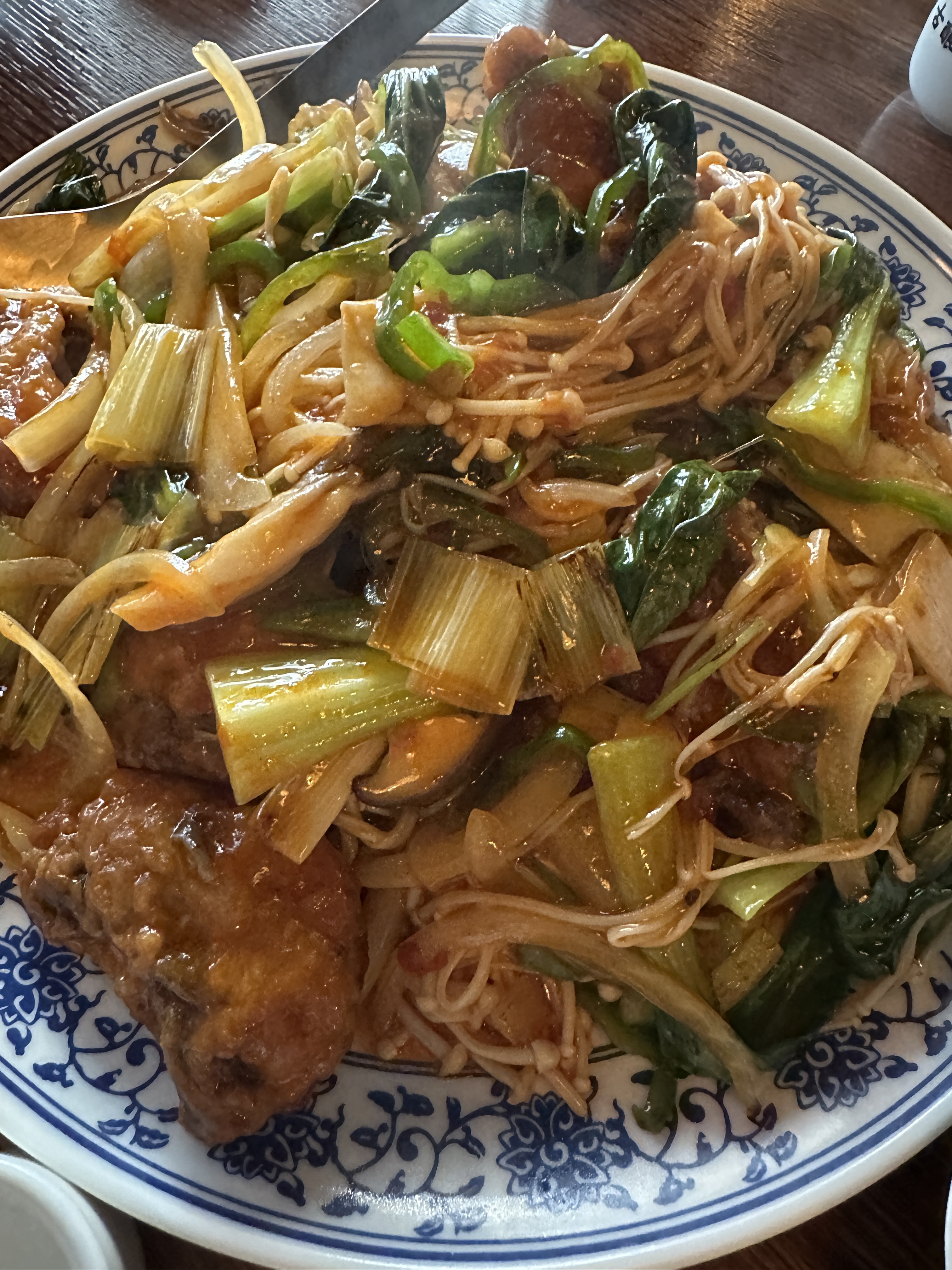어향은 매콤달콤한 중화풍 소스, 동고는 표고버섯을 뜻해요. 이 메뉴는 두툼한 표고버섯 튀김에 어향 소스를 끼얹은 요리로, 겉은 바삭하고 속은 촉촉했습니다. 표고버섯 안에 가득 찬 새우 속이 탱글탱글하게 살아 있어 씹는 맛이 일품이었어요.