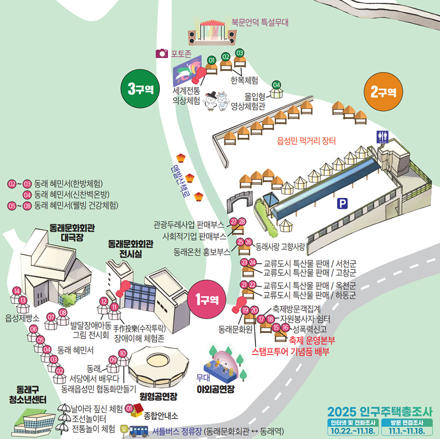 동래문화회관, 읍성광장, 명륜1번가, 온천천 카페거리, 온천장 일원에서 진행되며