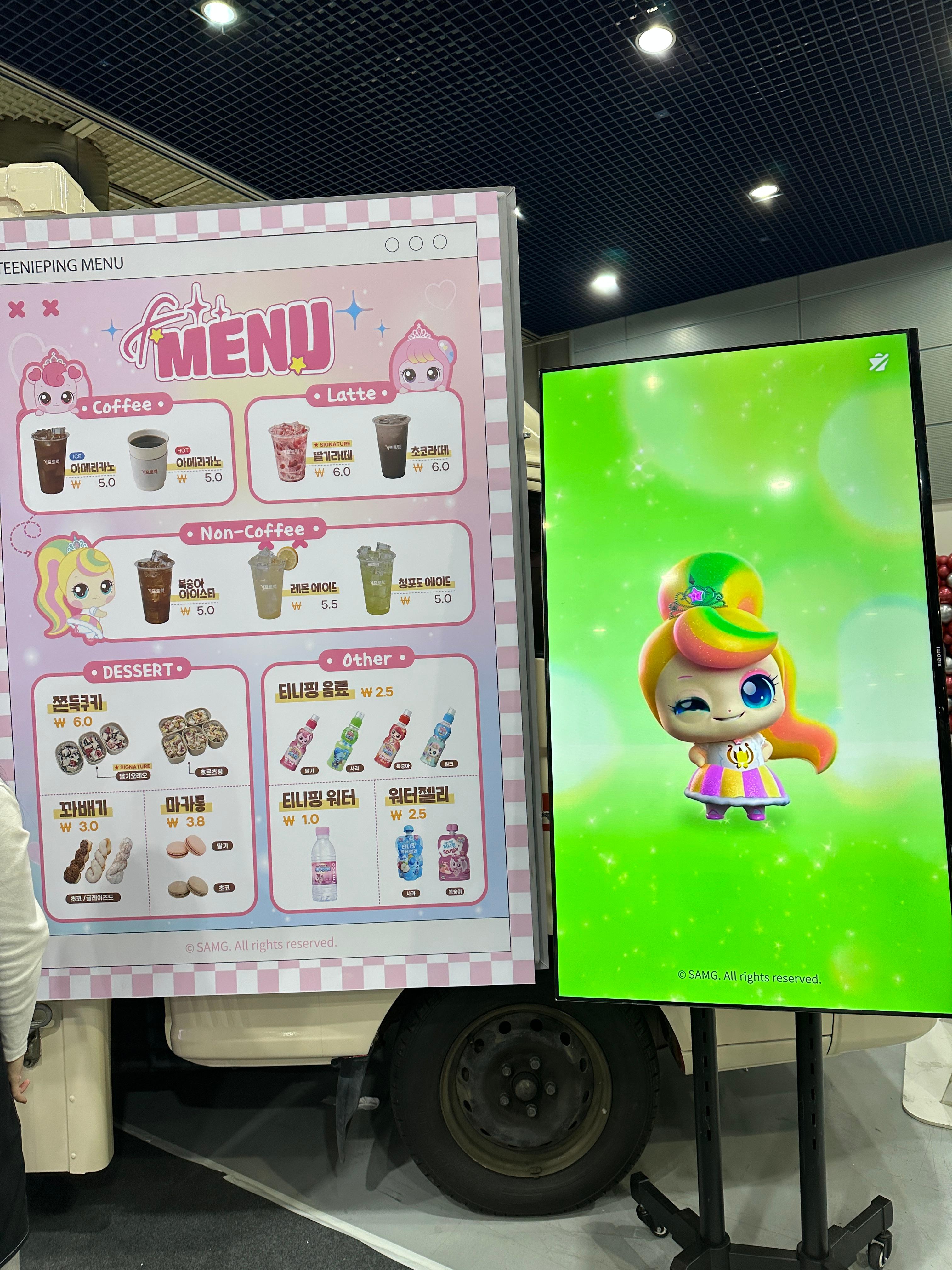 티니핑 부스에서 카페라떼를 주문하려다 보니