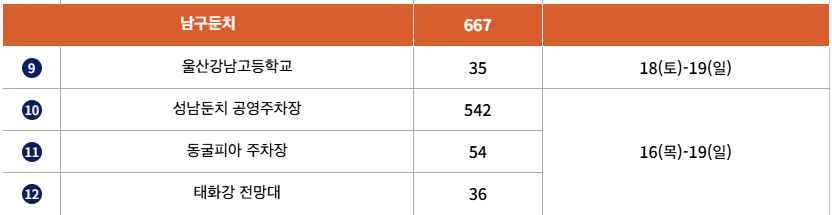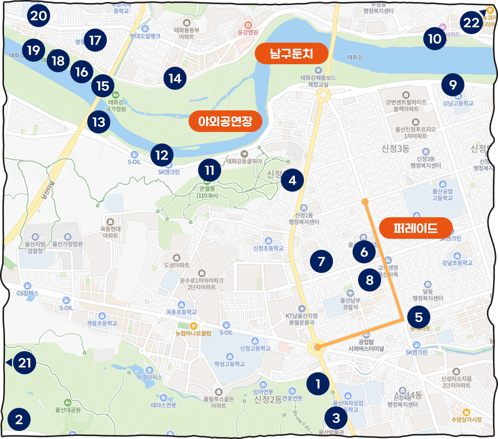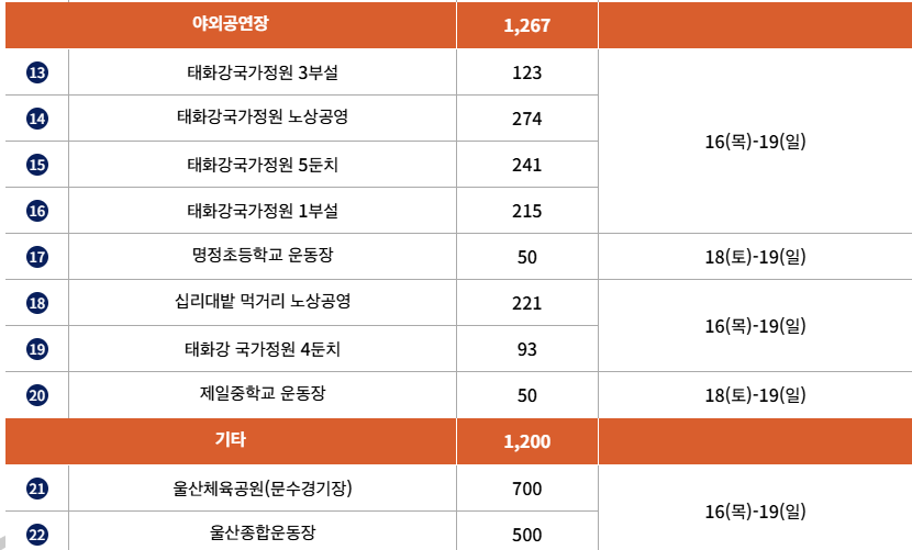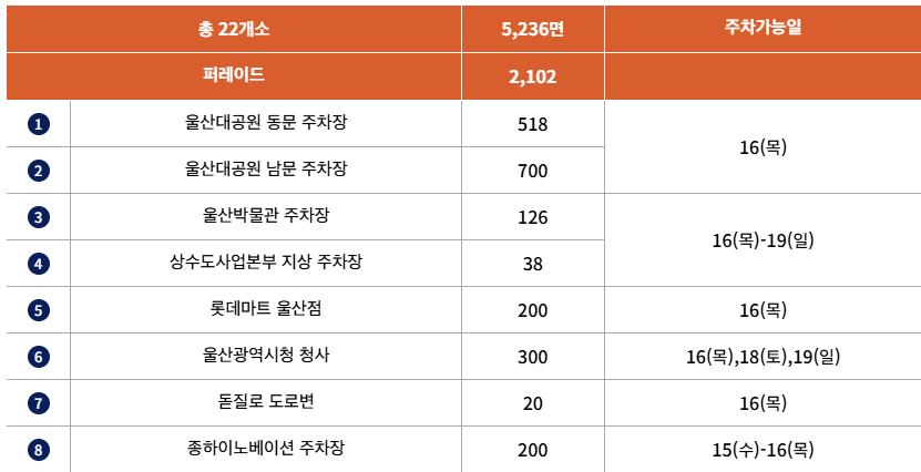 - 장소 : 공업탑, 태화강 국가정원 남구둔치, 야외 공연장 일대