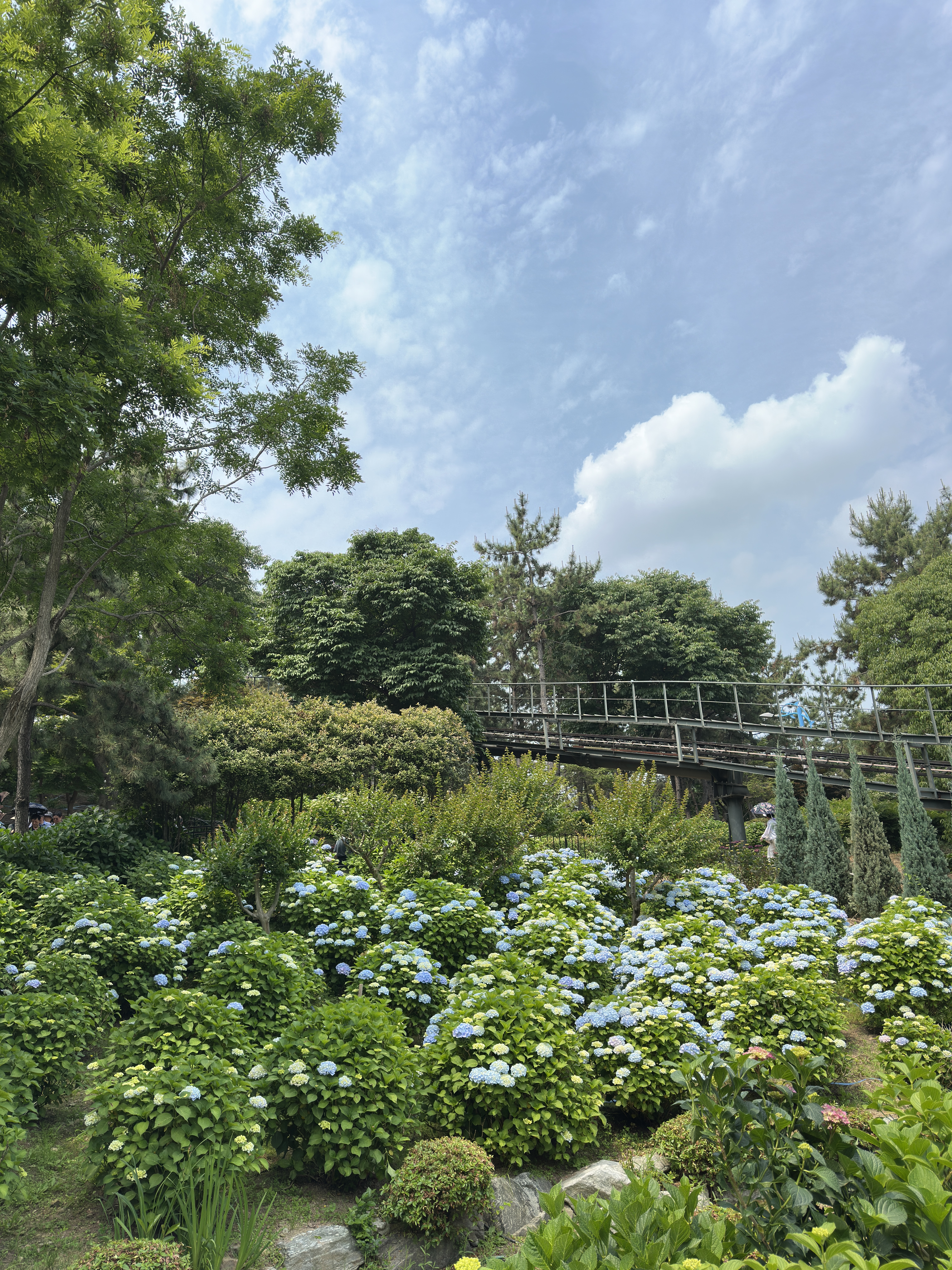 수국은 날씨와 기온에 따라 개화 시기가 달라지기 때문에, 실제 방문 시의 개화 정도를 미리 알고 가는 것이 중요합니다. 제가 방문한 시점은 6월 8일(토), 전체적으로 40% 정도 개화된 상태였어요.