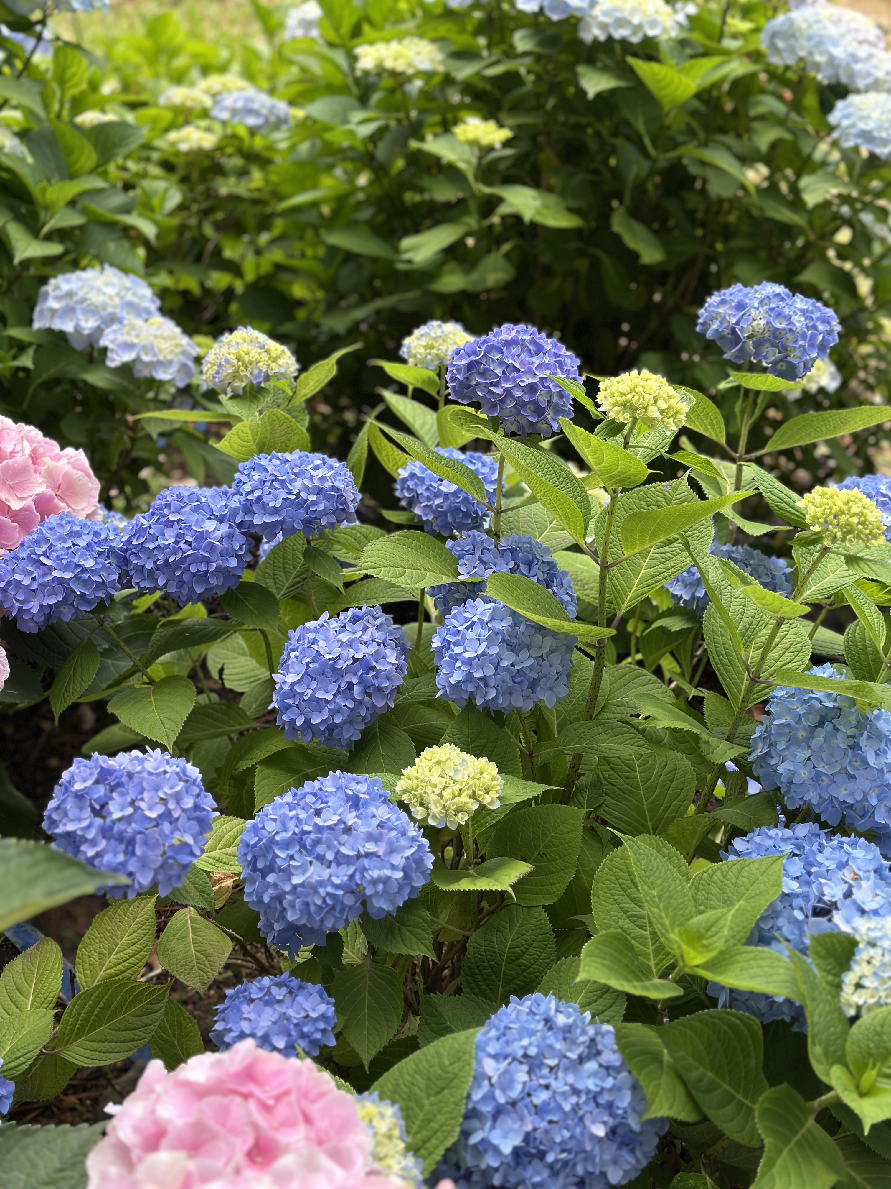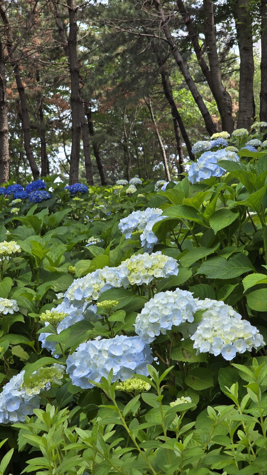언덕길을 따라 흰색, 연보라, 핑크, 청보라 등 다양한 색상의 수국이 흐드러지게 피어 있었고, 포토존마다 사람들이 모여 사진을 찍는 모습이 인상적이었어요.