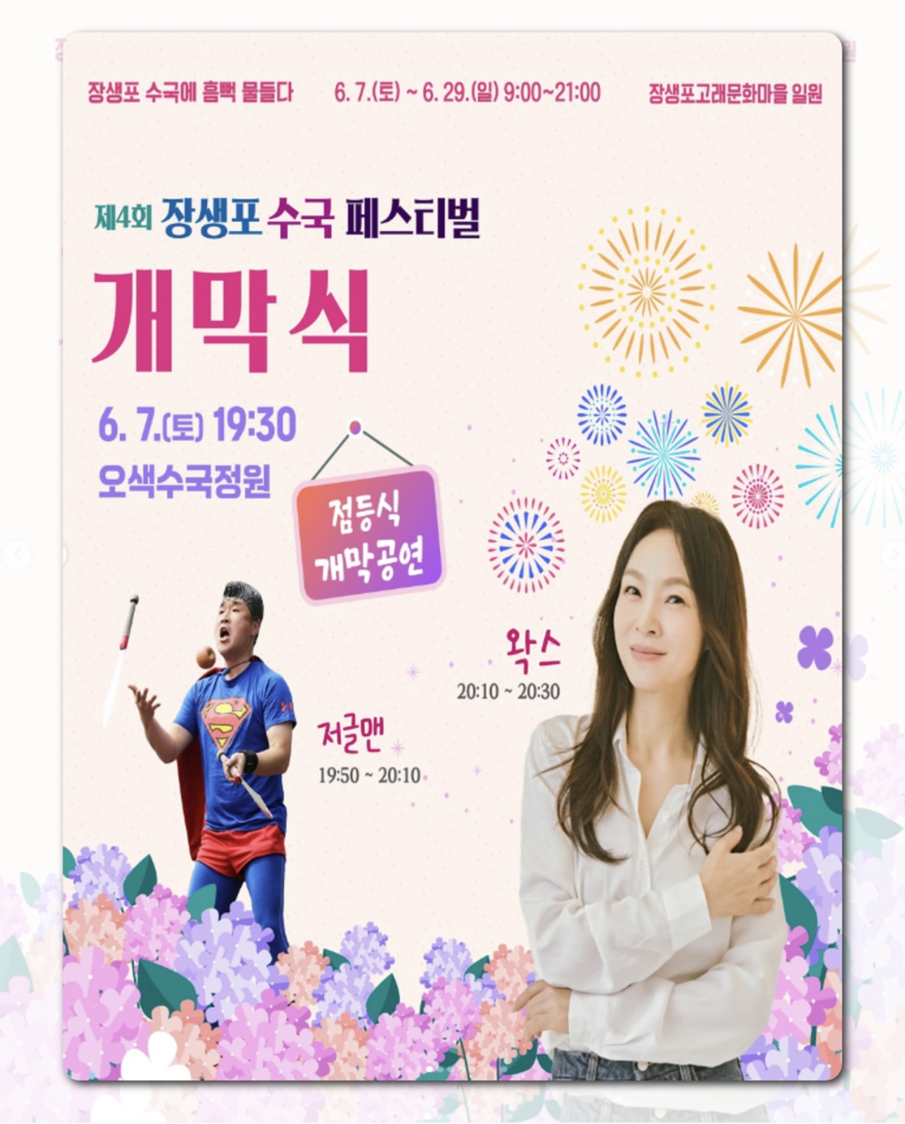 - 📅 축제 날짜 : 2025.06.07(토) ~ 2025.06.29(일) *개막식 6월 7일(토) 19시 30분, 가수 왁스