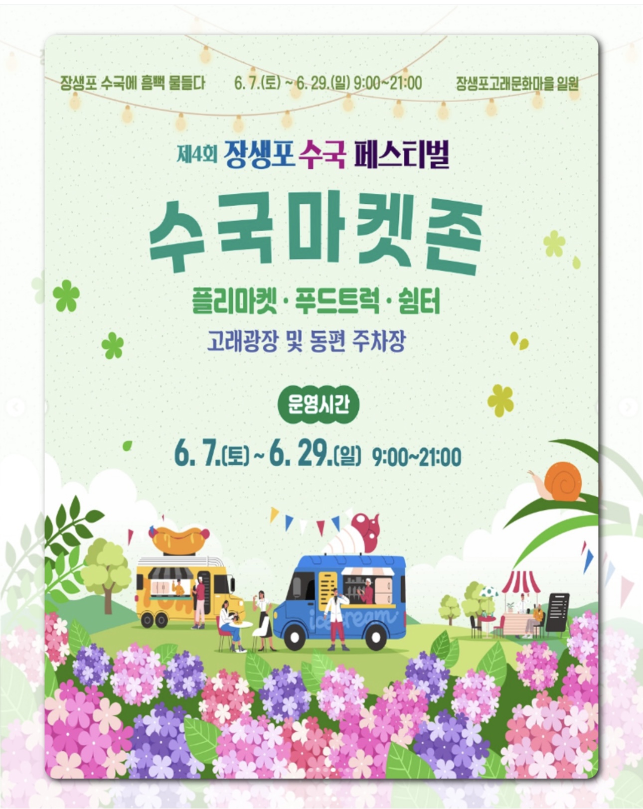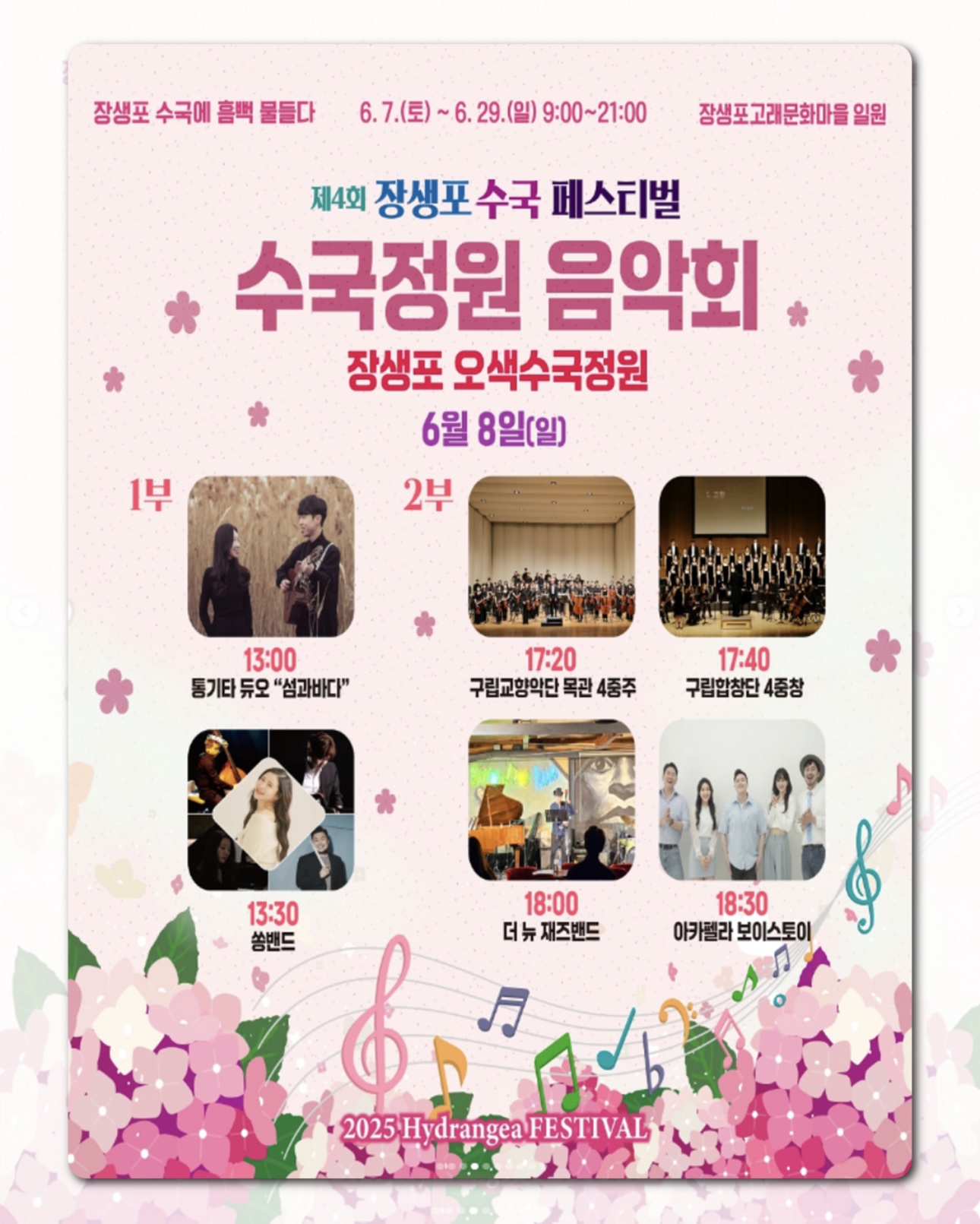 - 개막식, 버스킹 공연, 스트링라이트, 감성포토존, 수국정원 음악회, 전국사진공모전