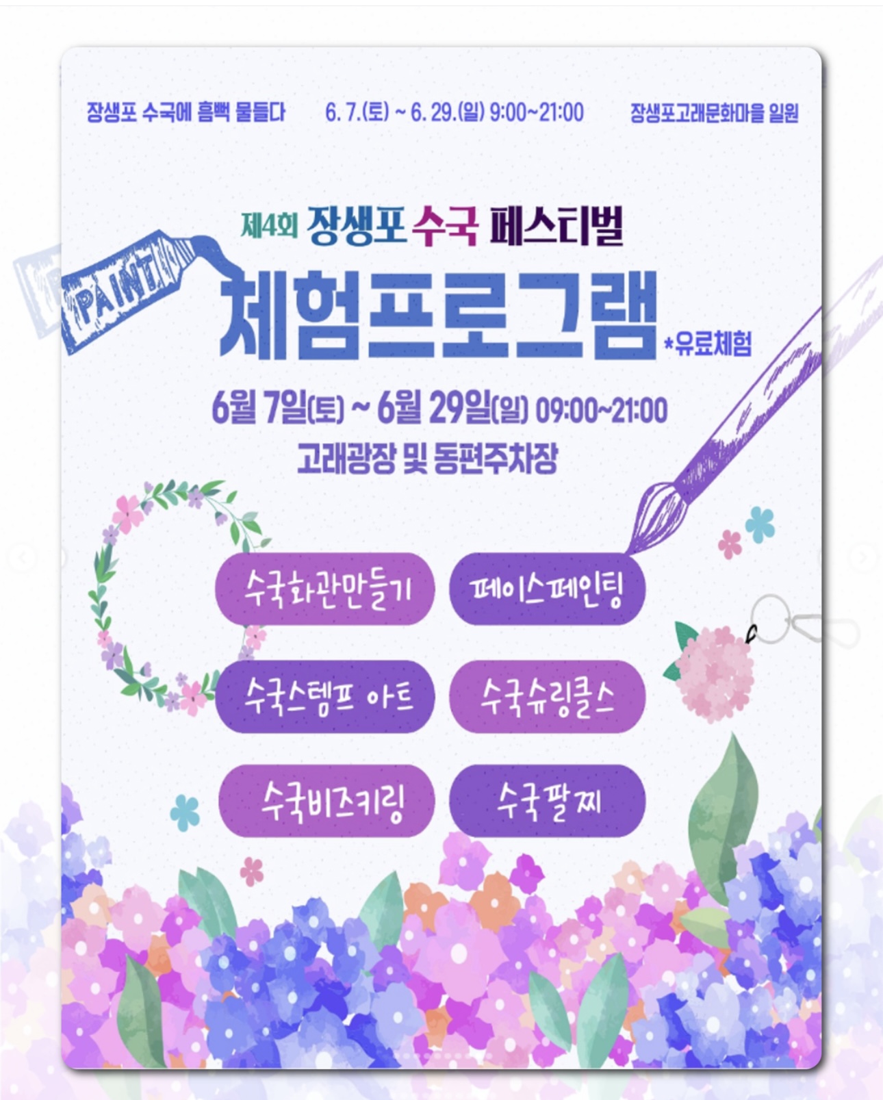 - 포토미션 이벤트, 수국관련 체험프로그램 등