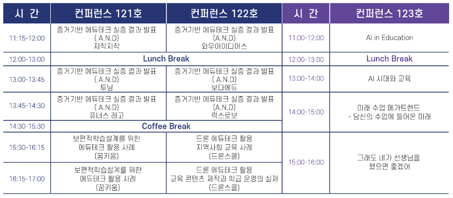 | 16:00~17:00 | 생성 인공지능 시대에 에듀테크 교수법 경북대학교 IT대학 - 금상택 교수 |