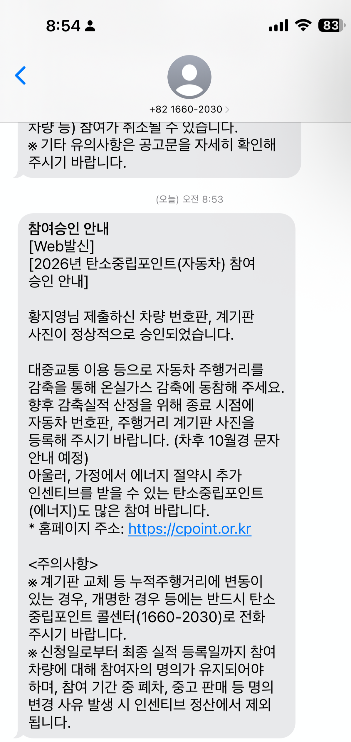 1️⃣ 탄소중립포인트 자동차 홈페이지 접속 👉 https://car.cpoint.or.kr